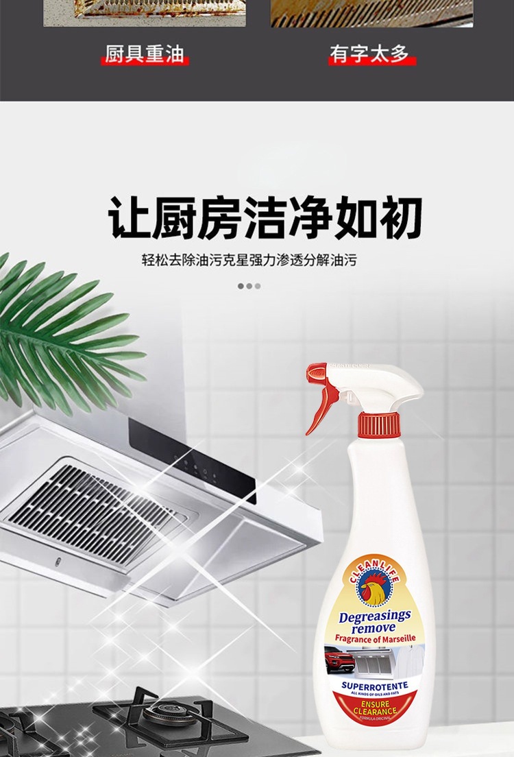 大公鸡进口配方油污净厨房强力除重油污清洁剂油烟机多功能清洗剂