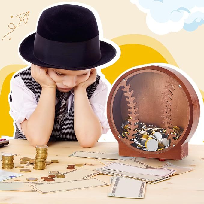 新しい木製貯金箱子供のホリデーギフトラグビーシェイプコイン収納ボックスドル紙幣貯金箱