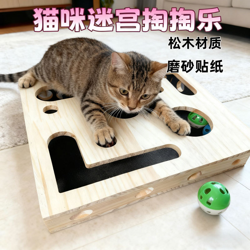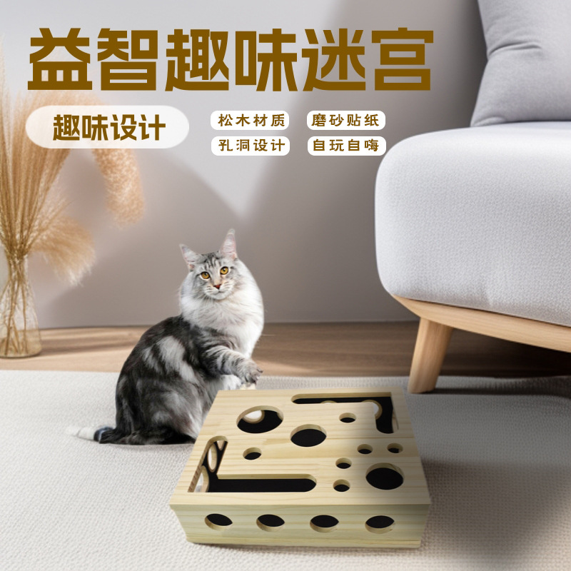 现货木质猫咪解闷自嗨消耗体力游戏方形趣味迷宫逗猫玩具