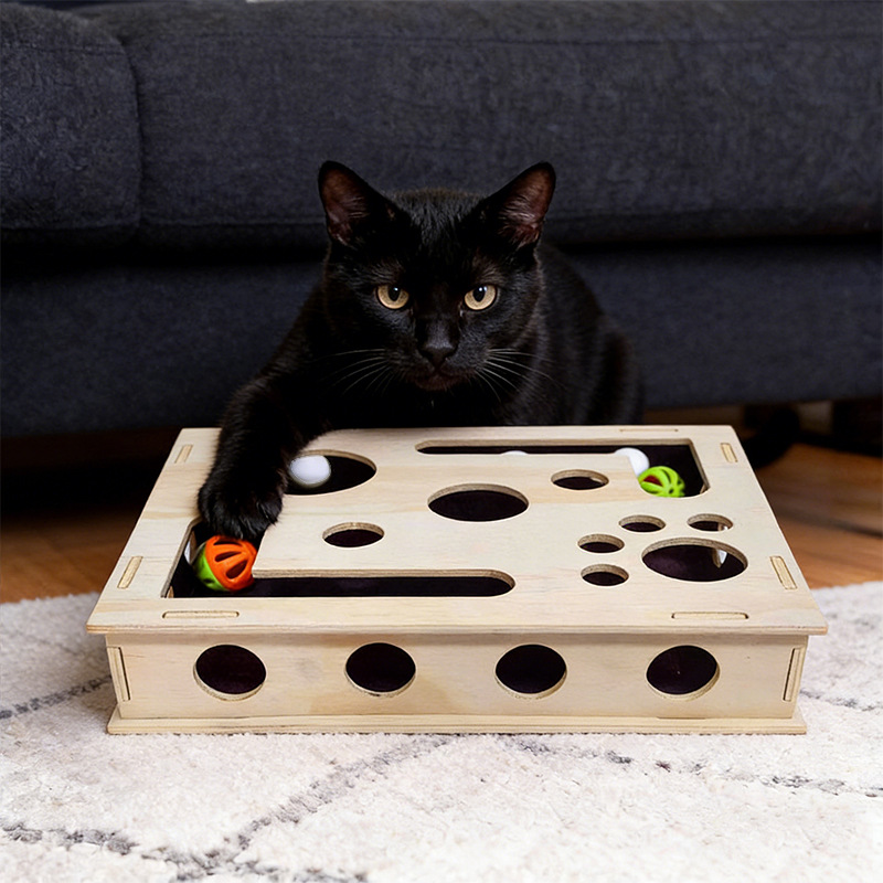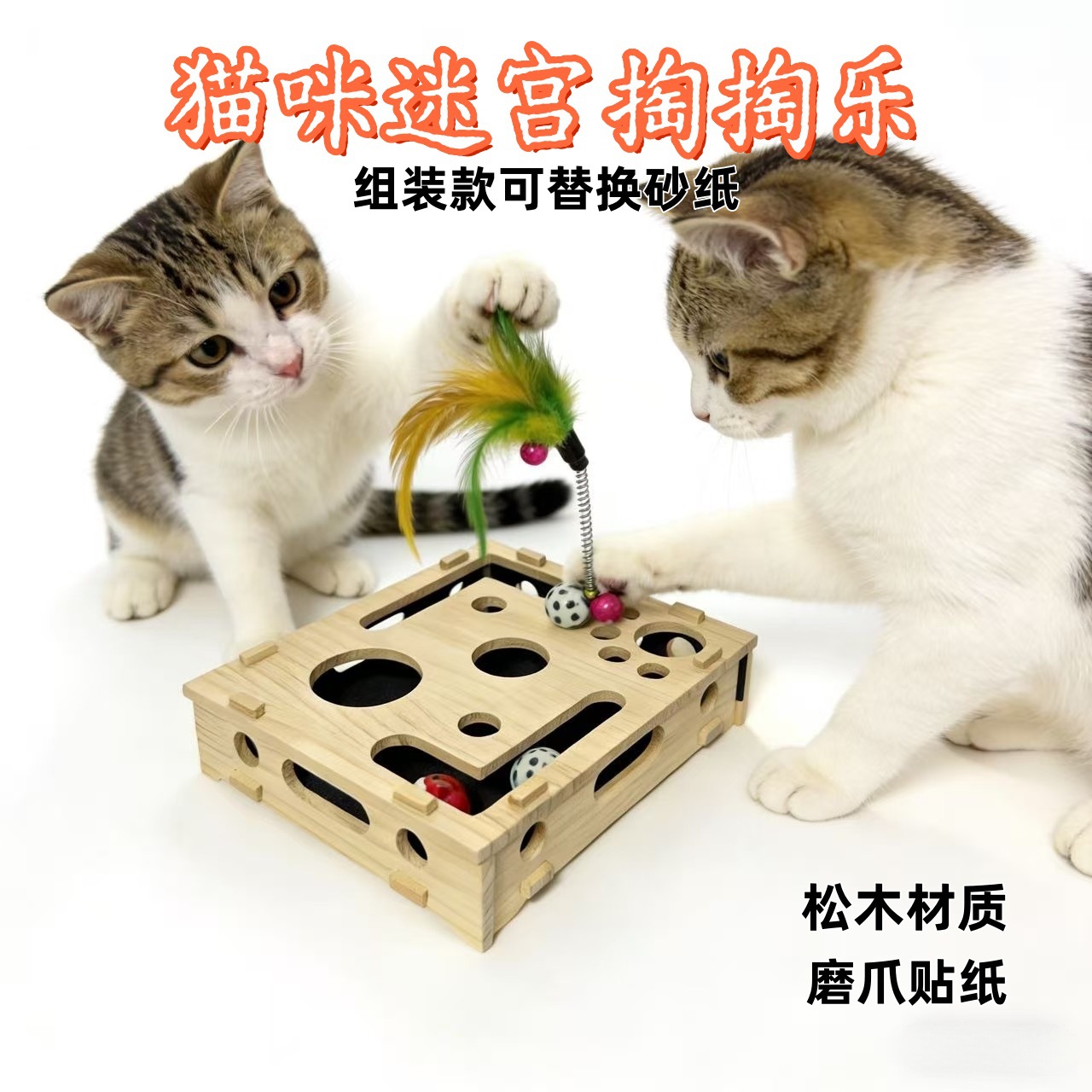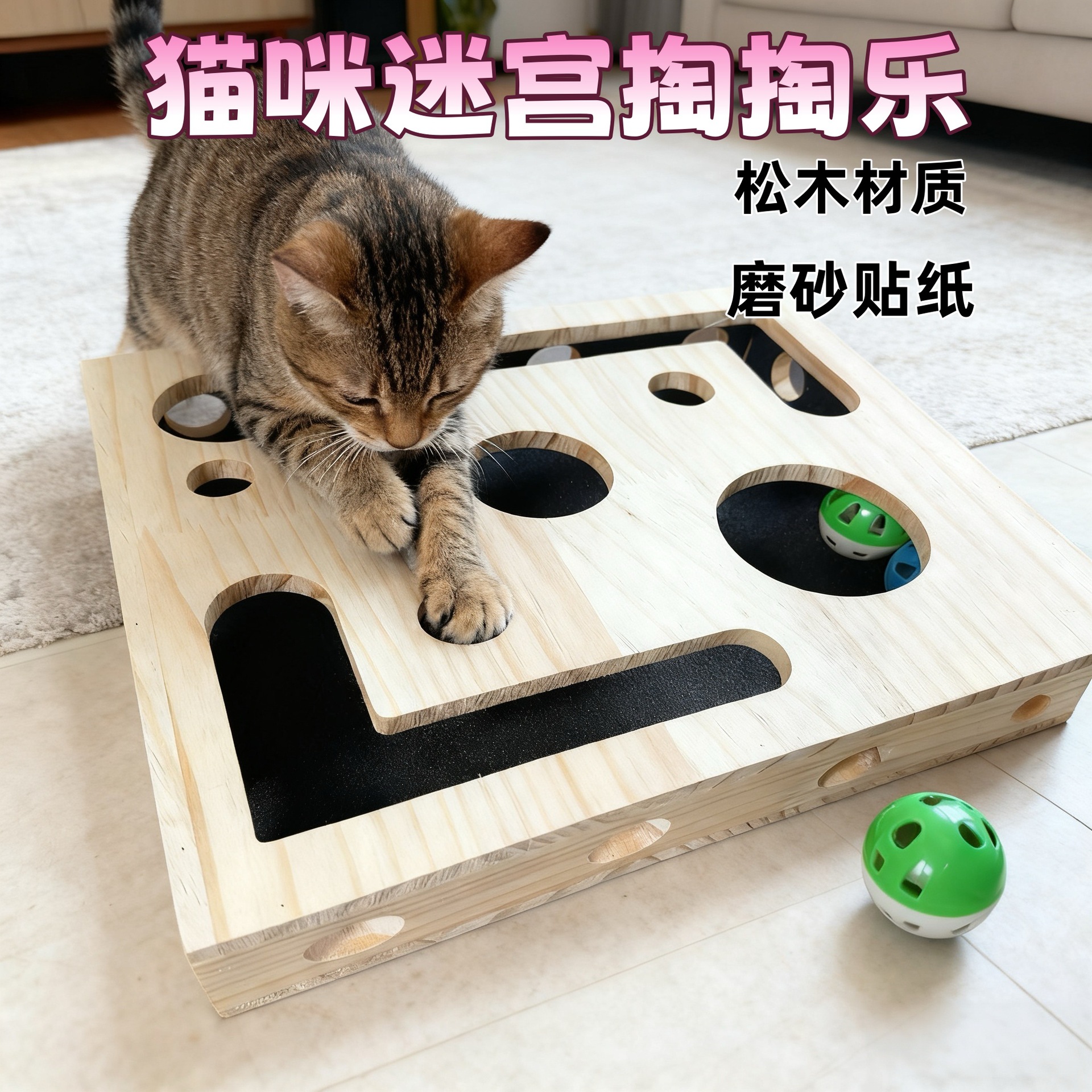 实木趣味迷宫猫咪益智玩具盒方形猫抓盒逗猫游戏盒自嗨解闷猫玩具