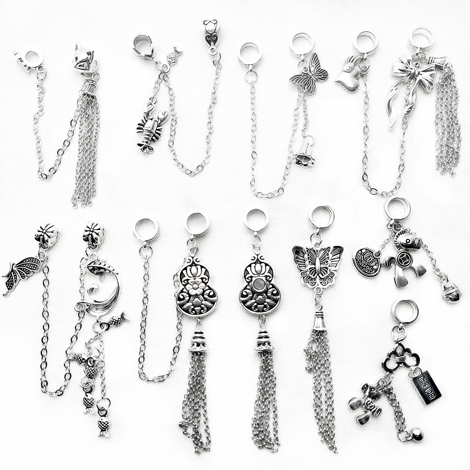 新中式藏银手链配饰蝴蝶流苏吊坠 diy水晶手链手串配件古银批发