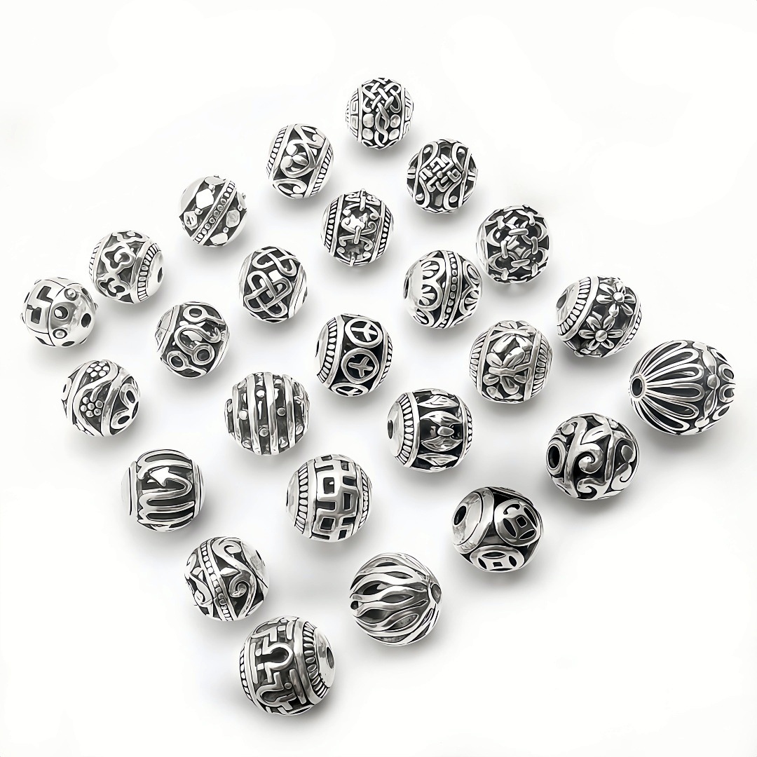 跨境亚马逊古银复古镂空球隔珠圆珠散珠 DIY串珠手工手链配件批发