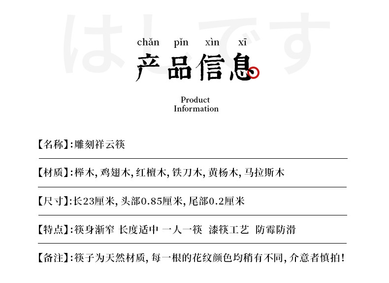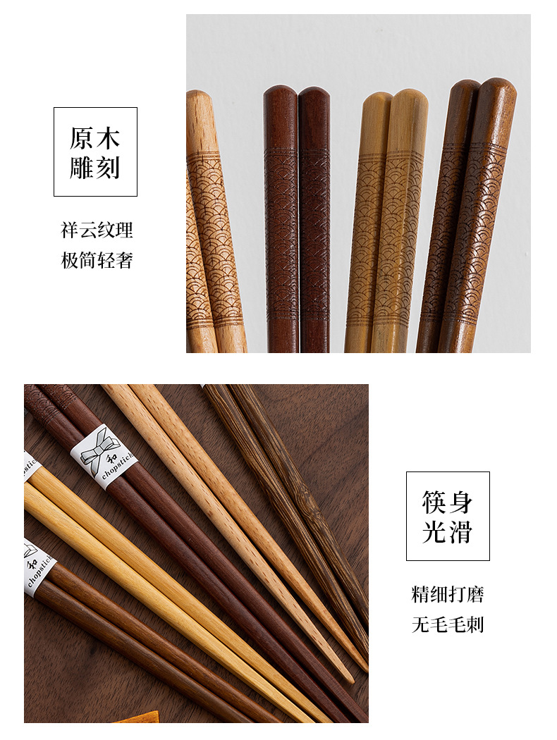 规格 祥云五木简装5双/套,祥云鸡翅木简装5双/套,祥云黄杨木简装5双/套,祥云榉木简装5双/套,祥云红檀木简装5双/套,祥云铁刀木简装5双/套