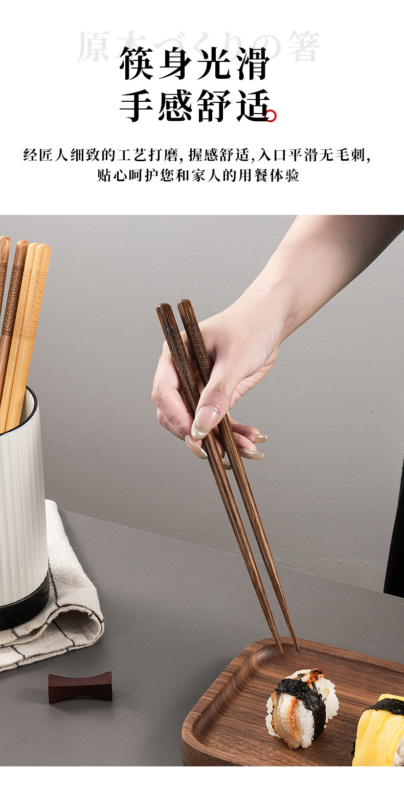 现货高档家用实木筷子鸡翅木原木日式尖头防霉防滑筷子木质餐具