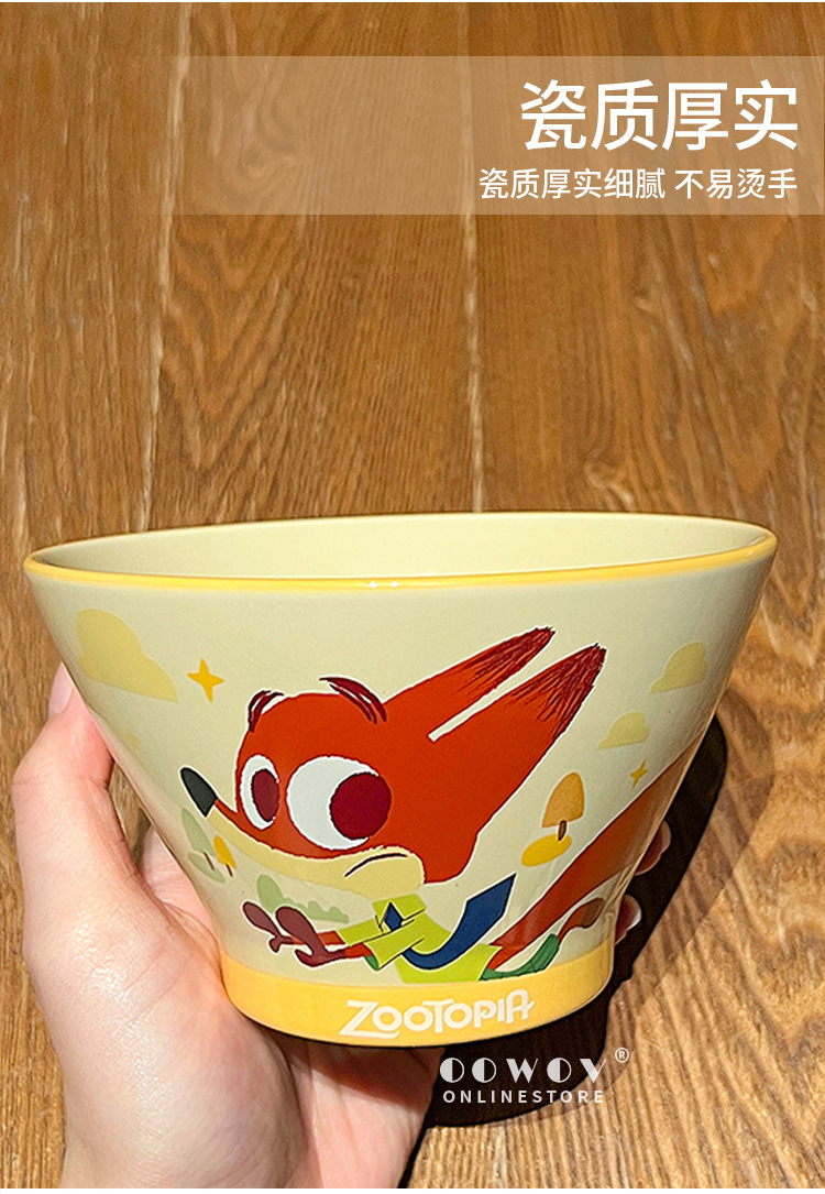 疯狂动物城尼克朱迪陶瓷斗笠碗家用2025新款高颜值釉下彩儿童面碗