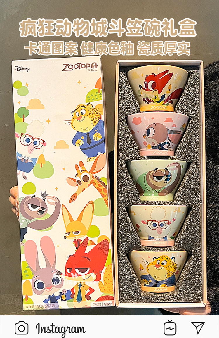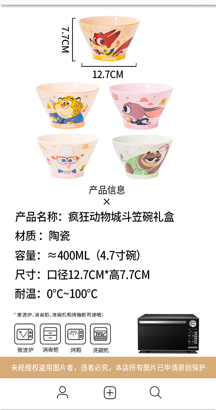 颜色 疯狂动物城萌萌斗笠碗5碗礼盒,朱迪,尼克,杨市长,闪电,豹警官