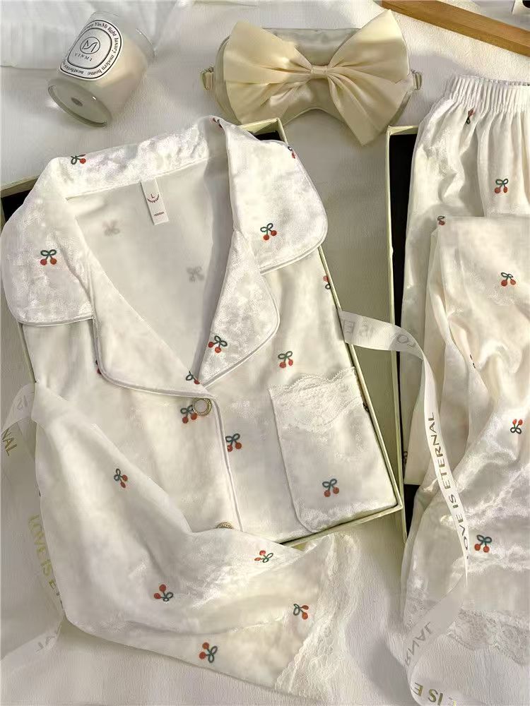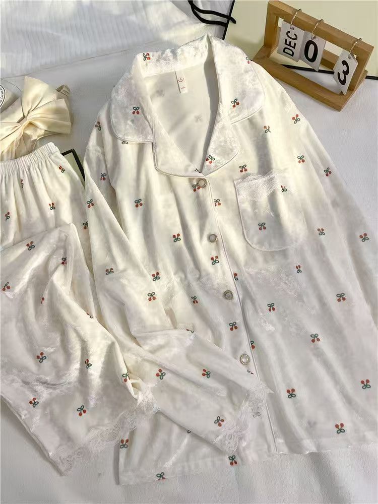 金丝绒睡衣女小樱桃秋冬季2025新款金钻绒蕾丝花边保暖家居服套装