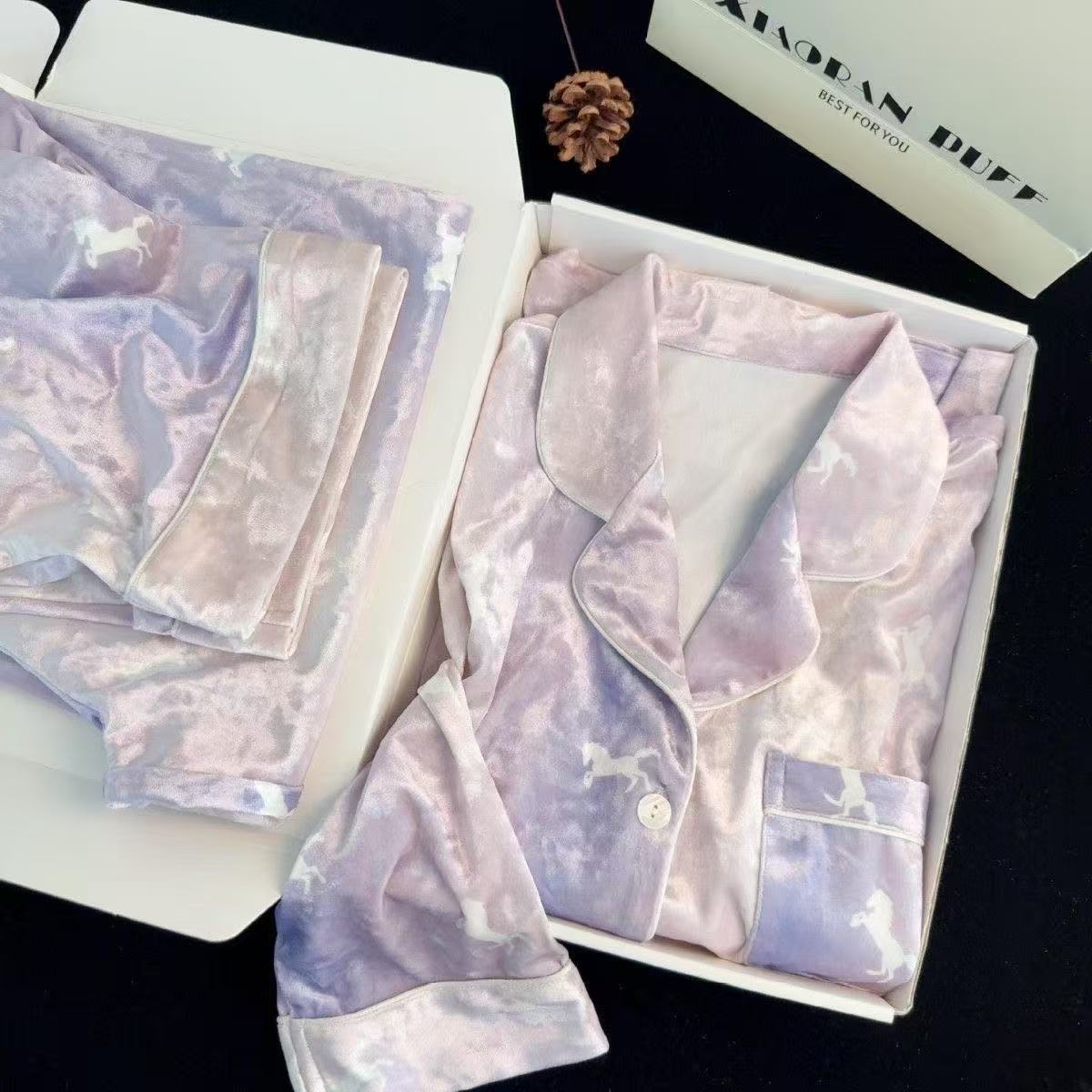 炫紫木马金丝绒睡衣女春秋个性舒适家居服2025新款送闺蜜生日礼物