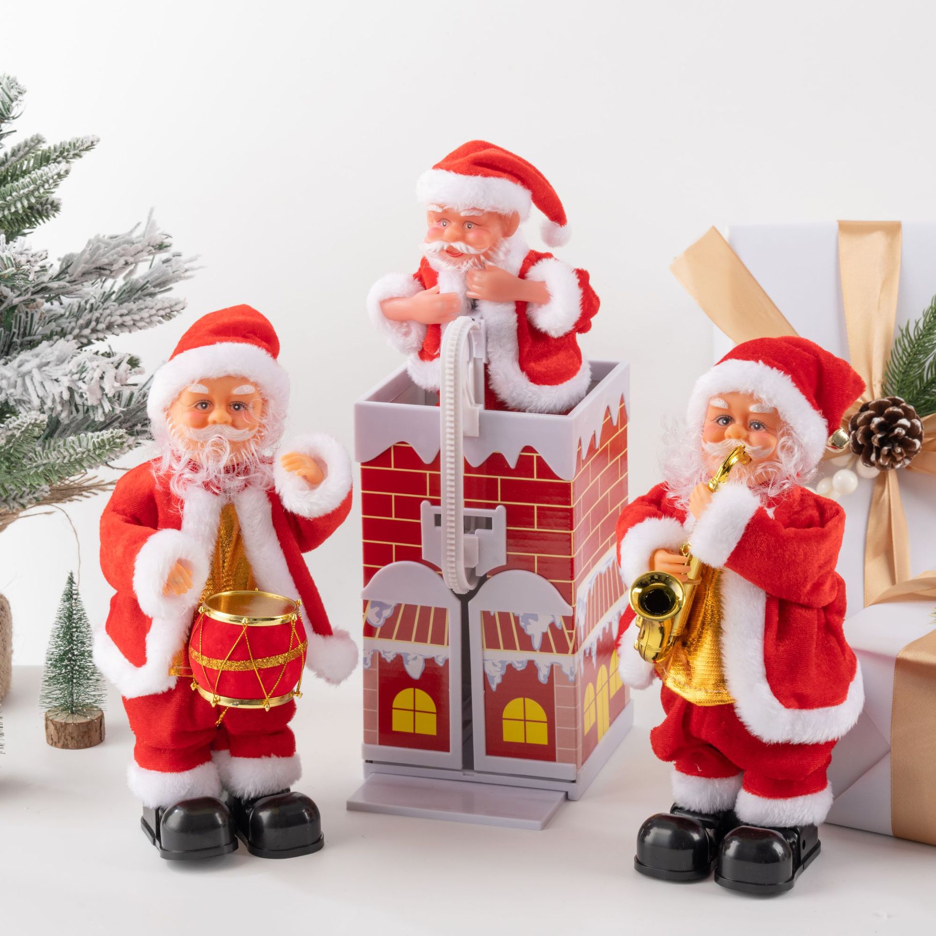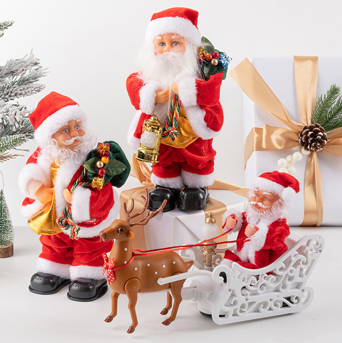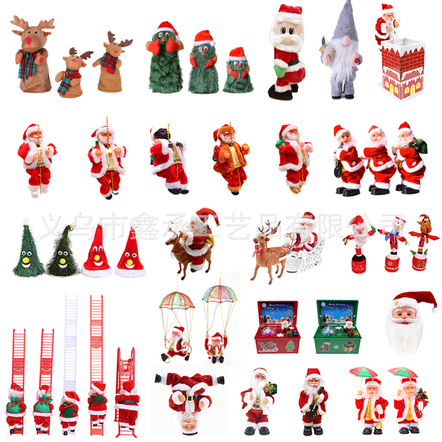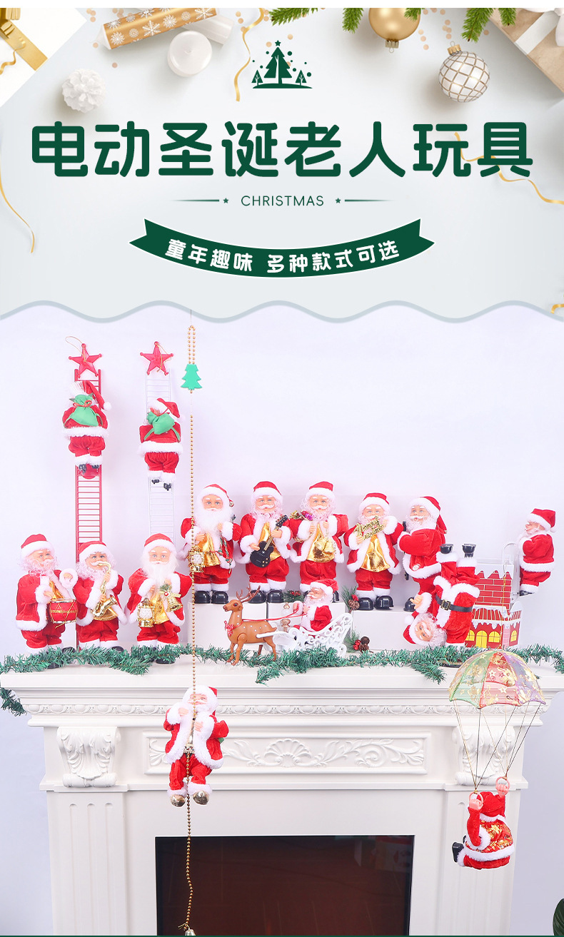 跨境电动圣诞老人跳舞唱歌萨克斯钻烟囱爬珠子降落伞抖屁股玩具