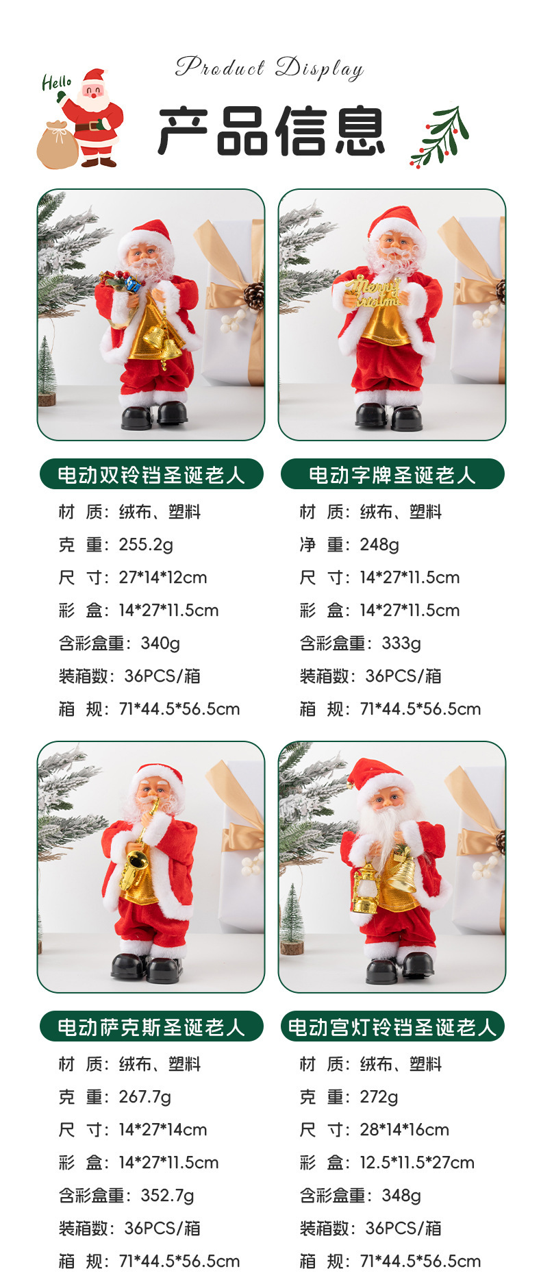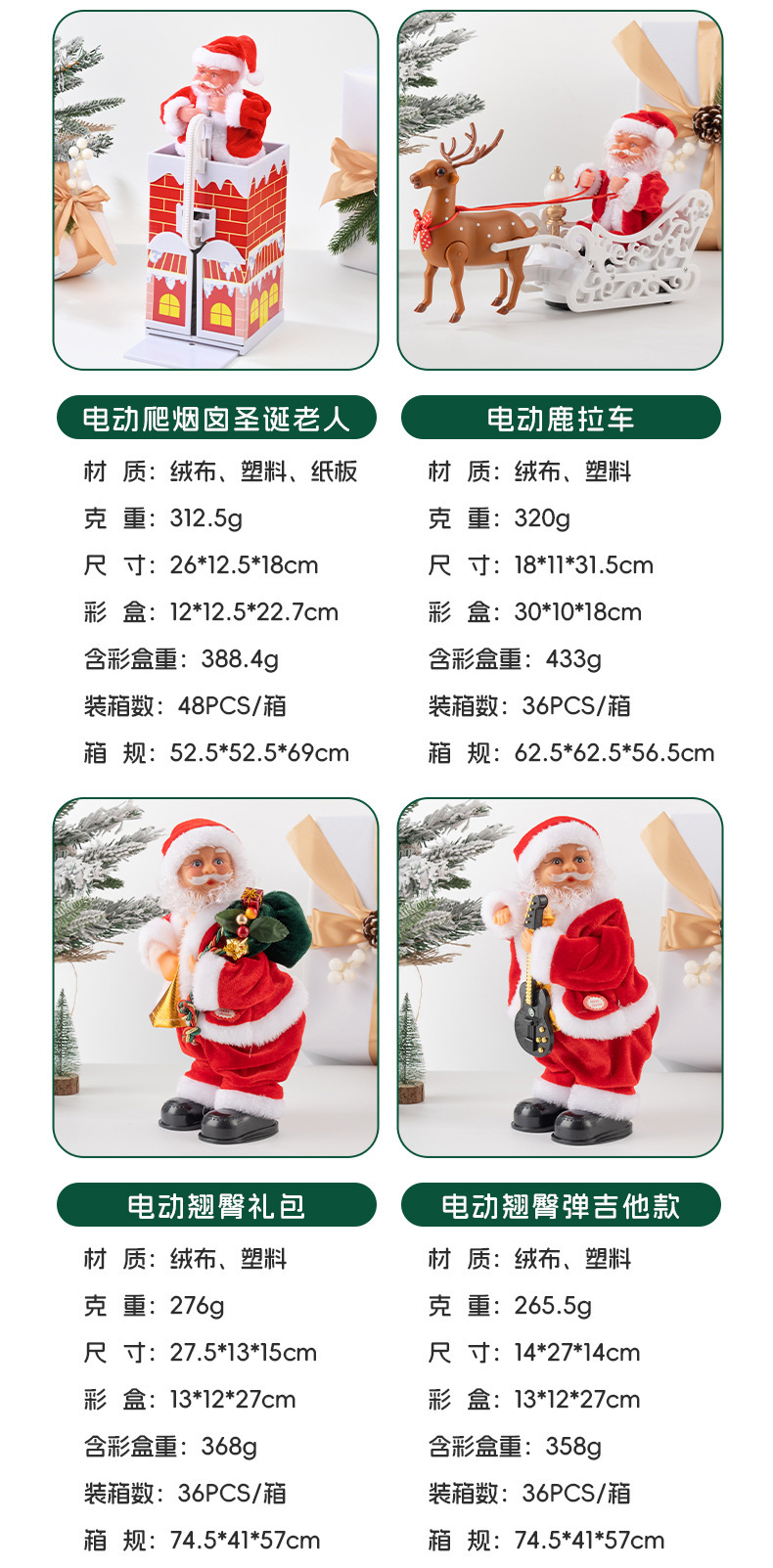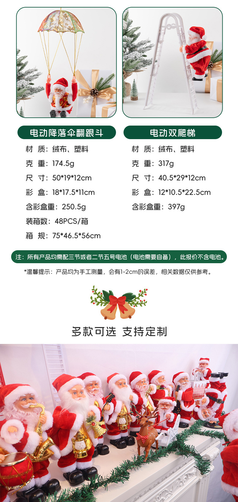 跨境电动圣诞老人跳舞唱歌萨克斯钻烟囱爬珠子降落伞抖屁股玩具