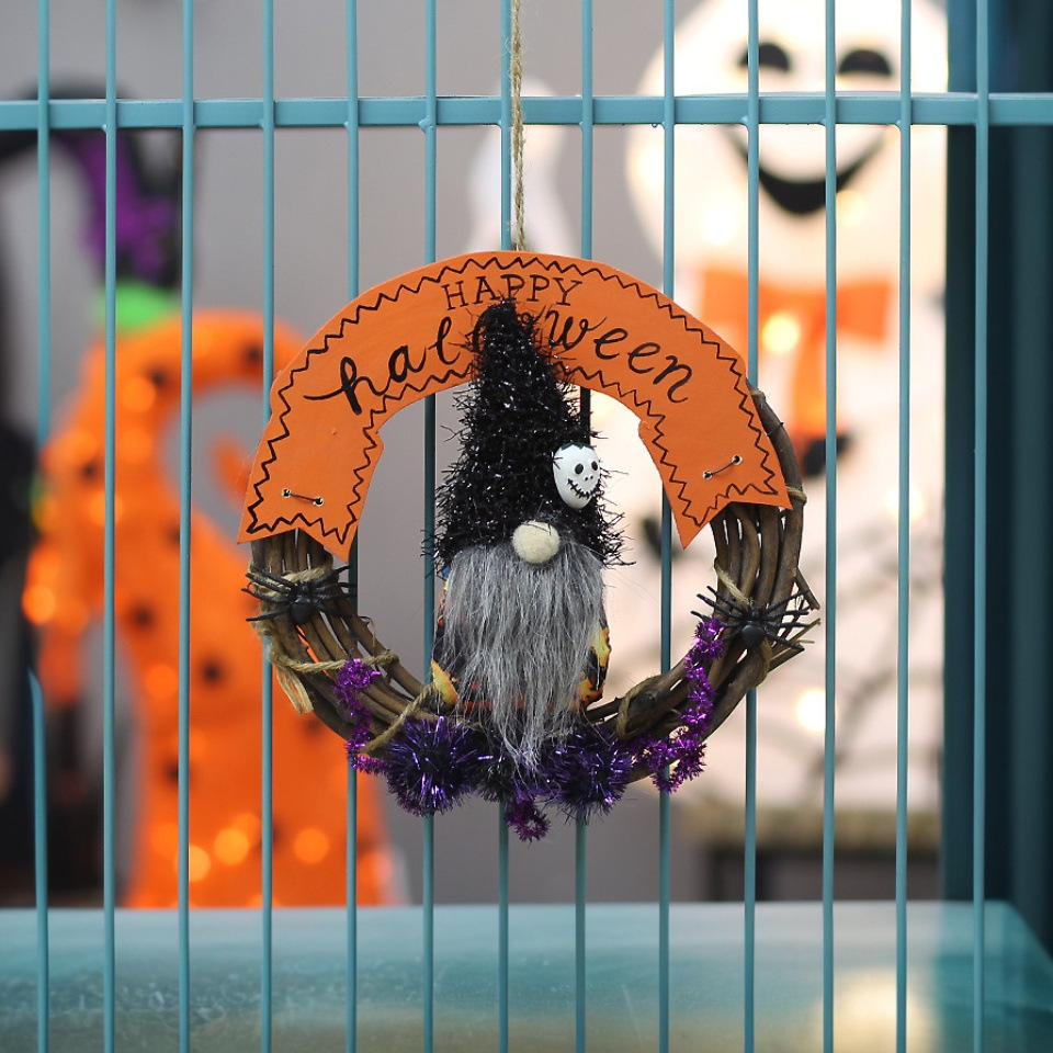 ハロウィン籐サークルドア吊り装飾顔のない人形ゴースト座り花輪壁掛けハロウィンゴーストフェスティバル会場雰囲気布