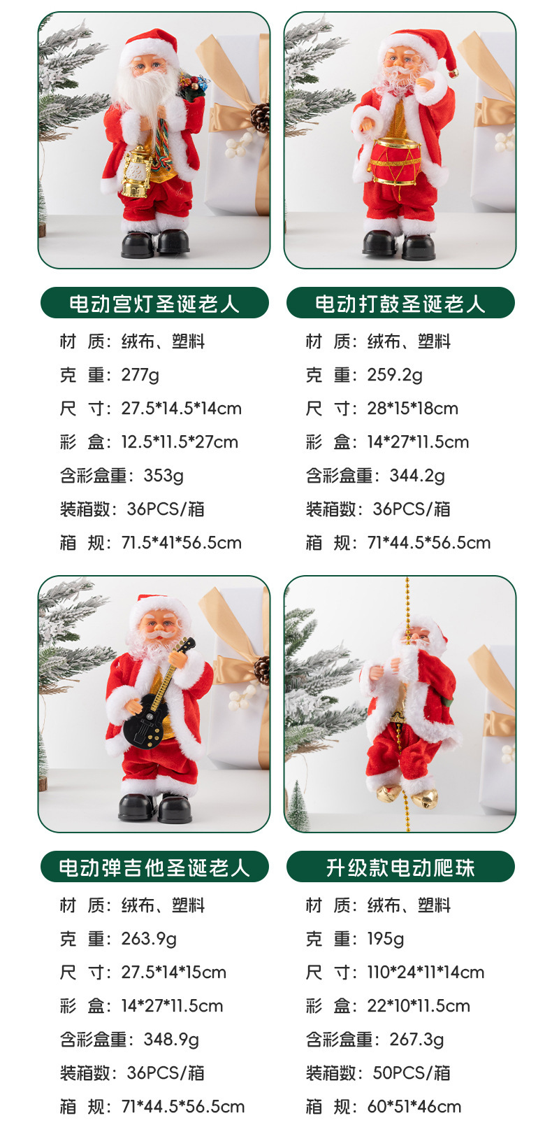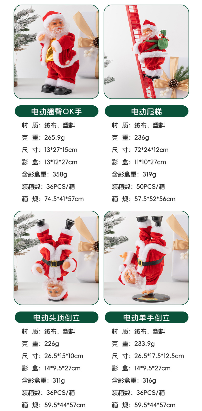颜色 升级防脱款电动爬珠,白人爬珠双开关,电动爬珠,红色单梯(不带光纤),红色光纤单梯,白色单梯,黑人光纤爬梯,电动爬梯A款(房子),电动爬梯(白色双爬梯),电动爬梯(红色双爬梯),翘臀OK手,翘臀礼包款,翘臀弹吉他款,电动爬烟囱,鹿拉车,骑鹿,降落伞翻滚款,宫灯铃铛,宫灯礼包,单手倒立,头顶倒立,电动音乐打鼓款,吹萨克斯,弹吉他,拿字牌,双铃铛礼包,电动摇摆圣诞树