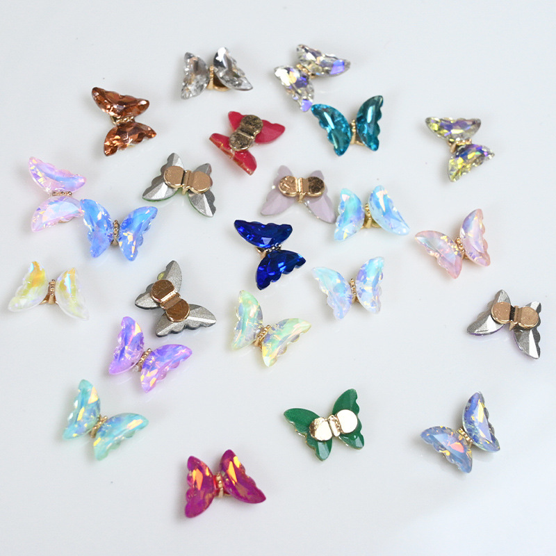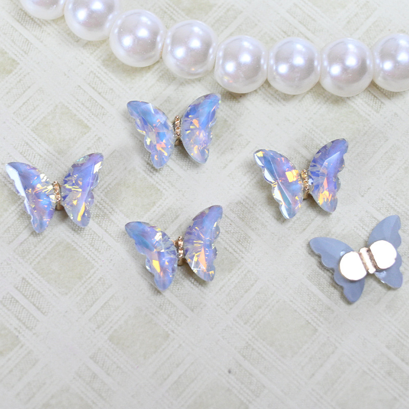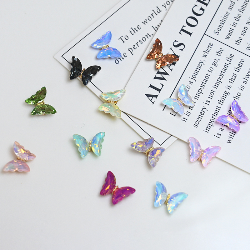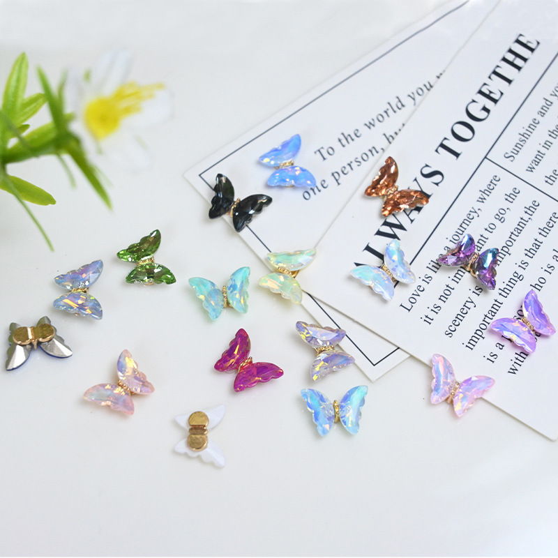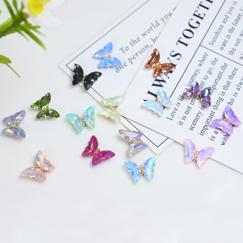 水晶蝴蝶钻美甲饰品钻新款极光幻彩超闪立体蝴蝶闪钻指甲配饰批发