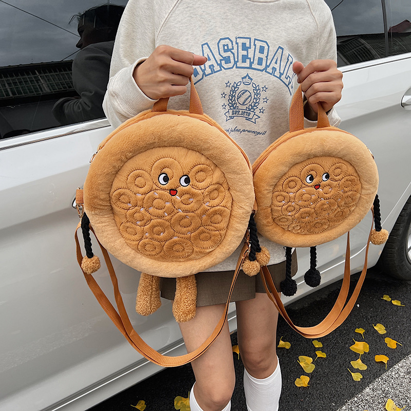 时尚小众新疆馕背包毛绒玩偶可爱创意大容量包洋气高级多功能背包