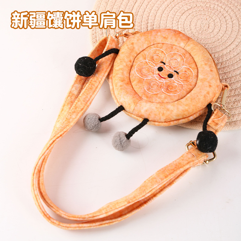 跨境超萌新疆馕饼单肩包挂件毛绒玩偶公仔包包挂饰钥匙扣毛绒玩具