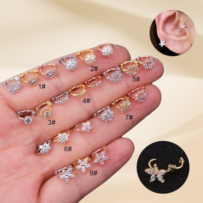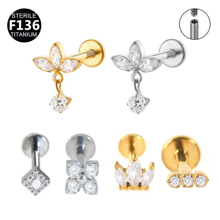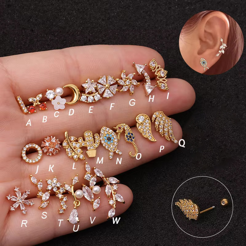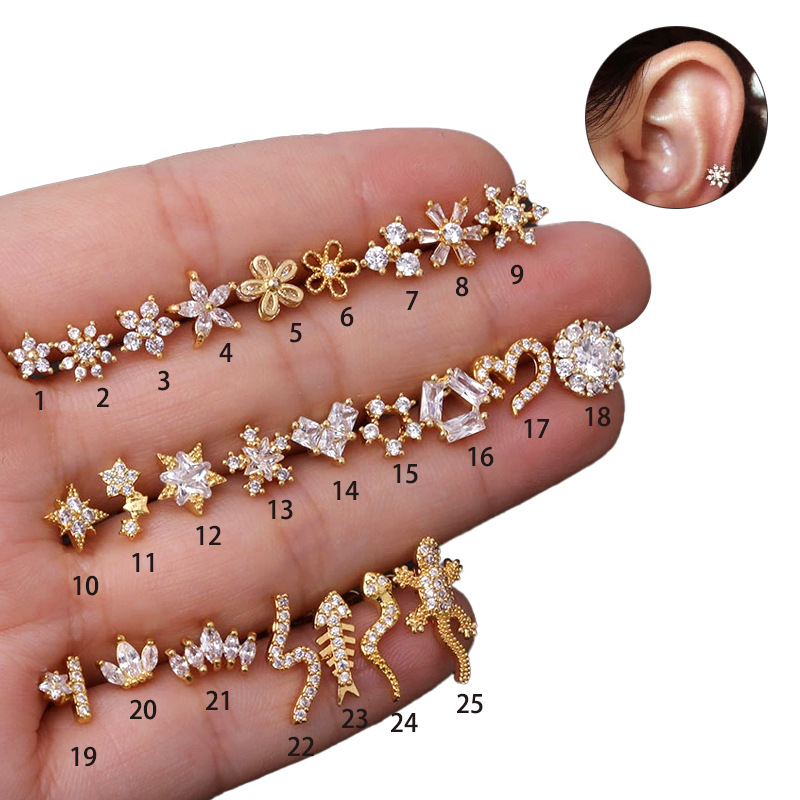 【名称】:1.2*6mm不锈钢杆微镶锆石皇冠耳骨钉螺丝拧球时尚耳饰穿刺饰品