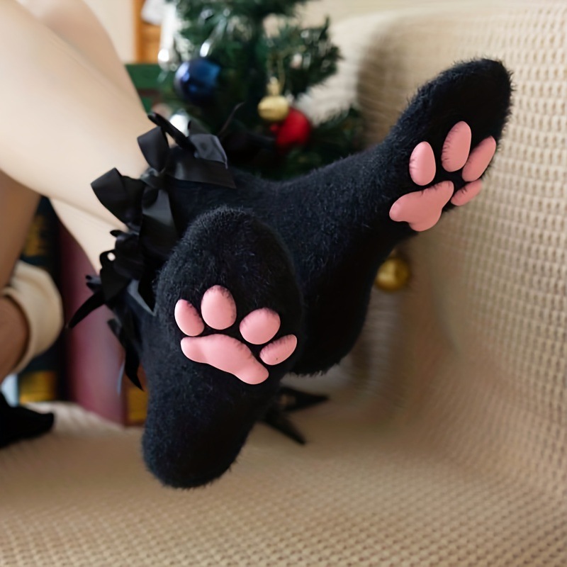 シリコン滑り止め3d立体猫爪パッド太ももの靴下の長い筒が膝を越えてjkビロードの靴下の黒い糸の女性の純欲の靴下