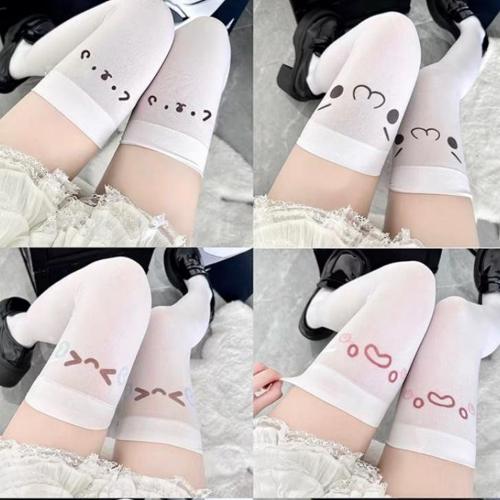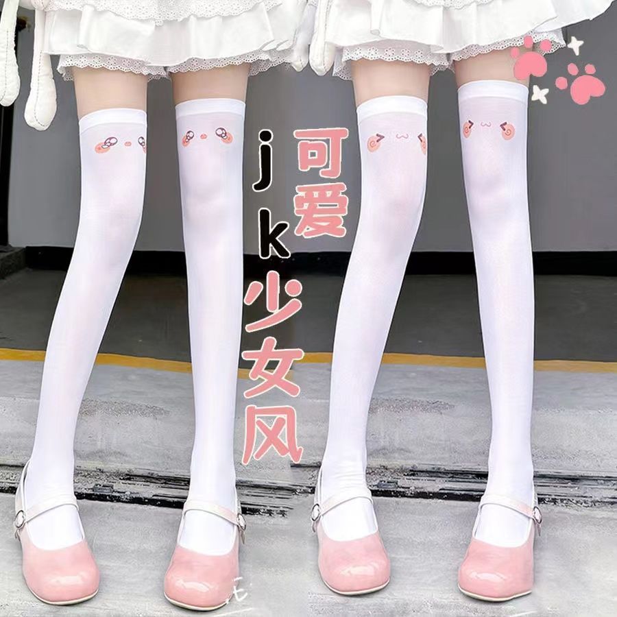 オリジナルの日系顔文字かわいいプリント亜文化過膝靴下純欲二次元表情長筒白ストッキング