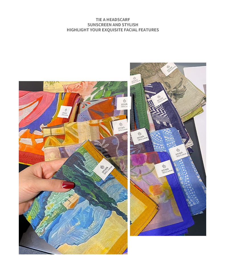 韩系复古小方巾法式双面文艺装饰棉麻丝巾女薄款绑发腰果头巾领巾