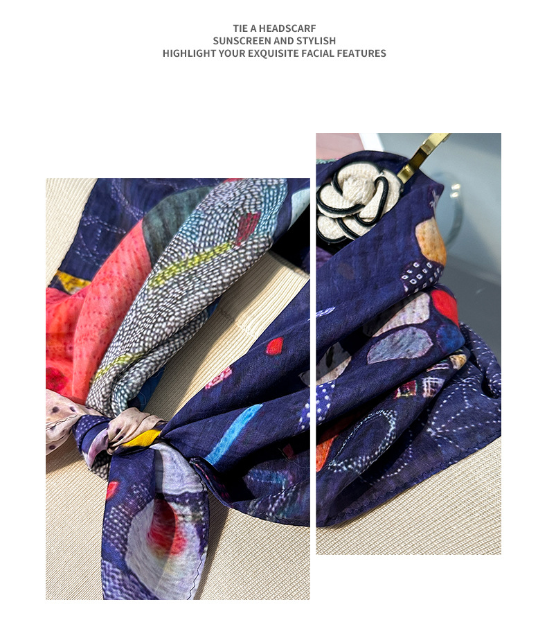 「山茶之约」雅致西丽纱真丝丝巾女春夏多功能桑蚕丝围巾装饰领巾