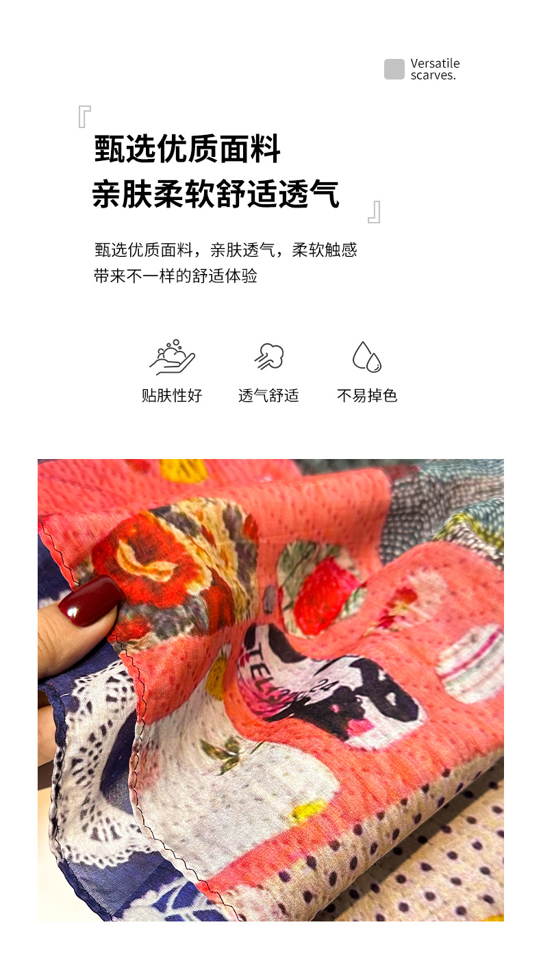 2025春秋新品甜美清新时尚丝巾高级感百搭方巾气质女士印花丝巾