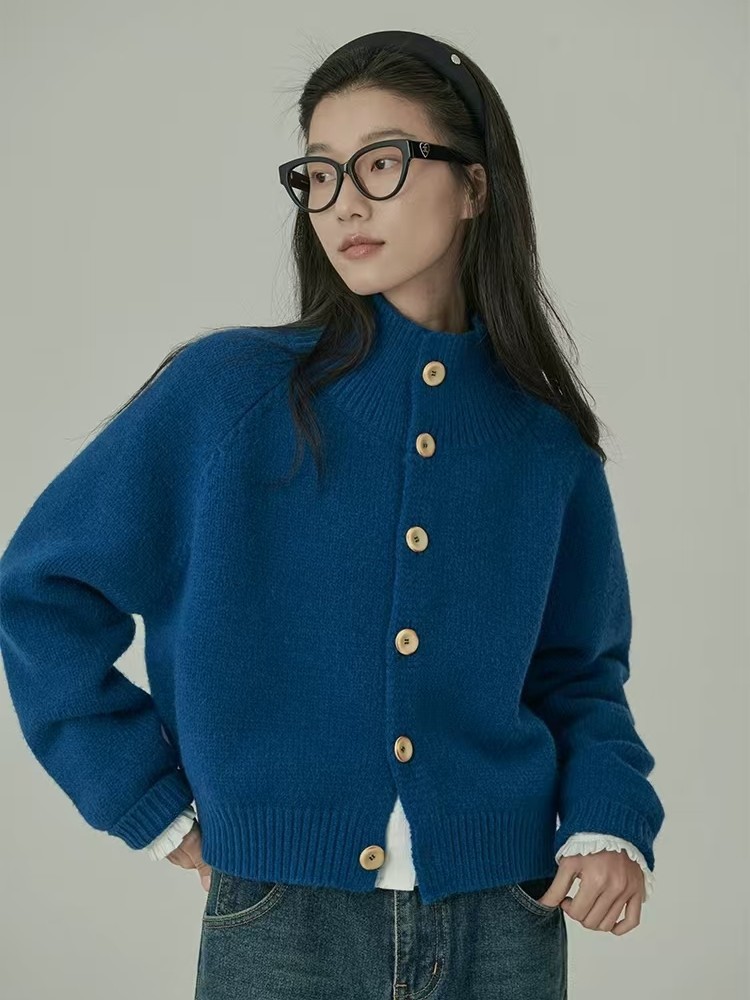 2025秋冬新作デザインウールカーディガンレディースショート丈厚手斜め襟ジャケット柔らかカシミヤニットセーター