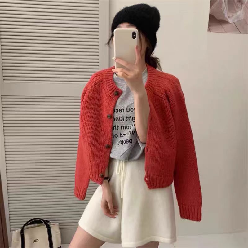 25 春と秋のカシミア カーディガン レディース ルーズ ショート セーター ジャケット ソフトでワックスのようなセーター 多用途でスリムな気質