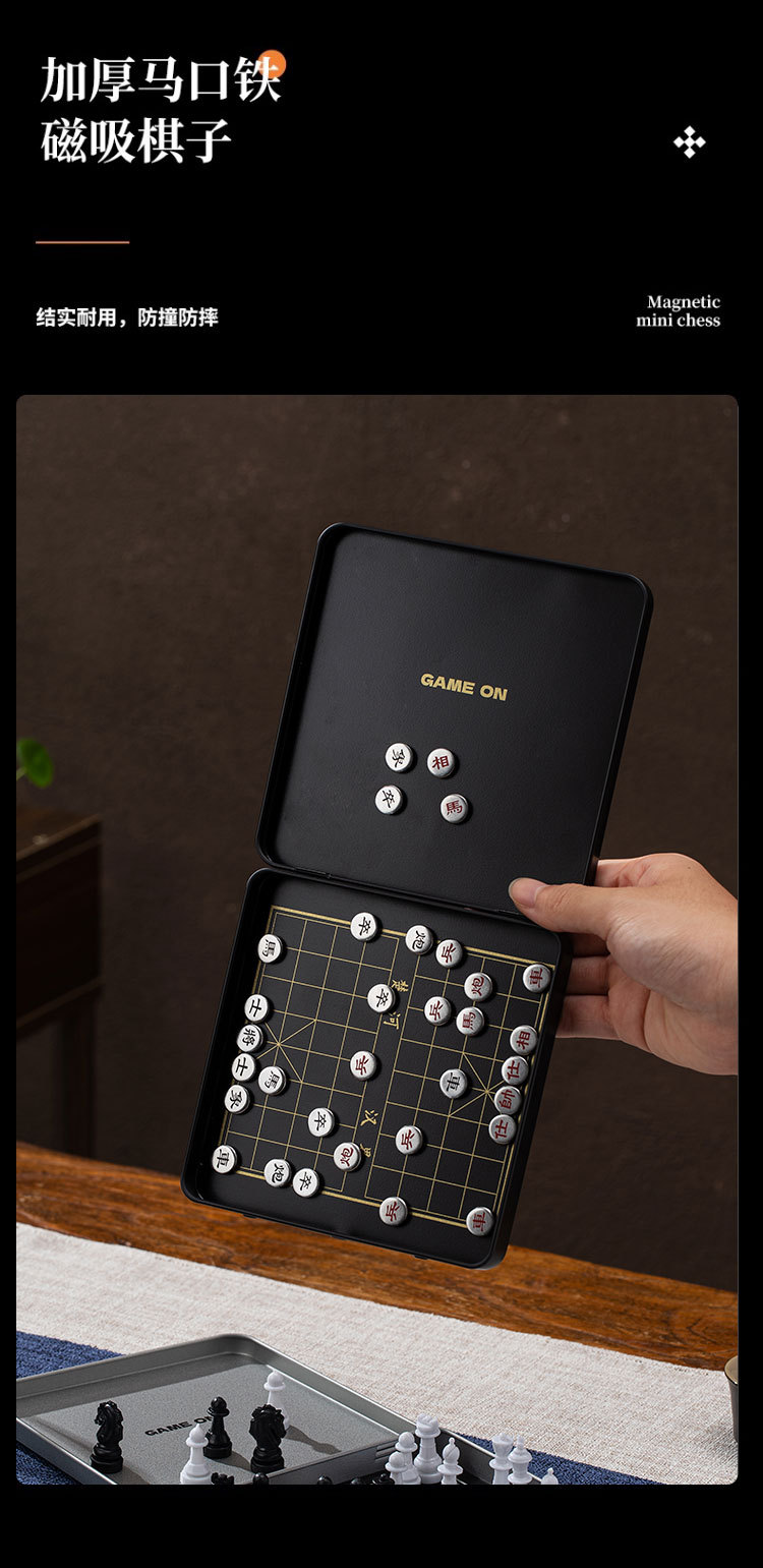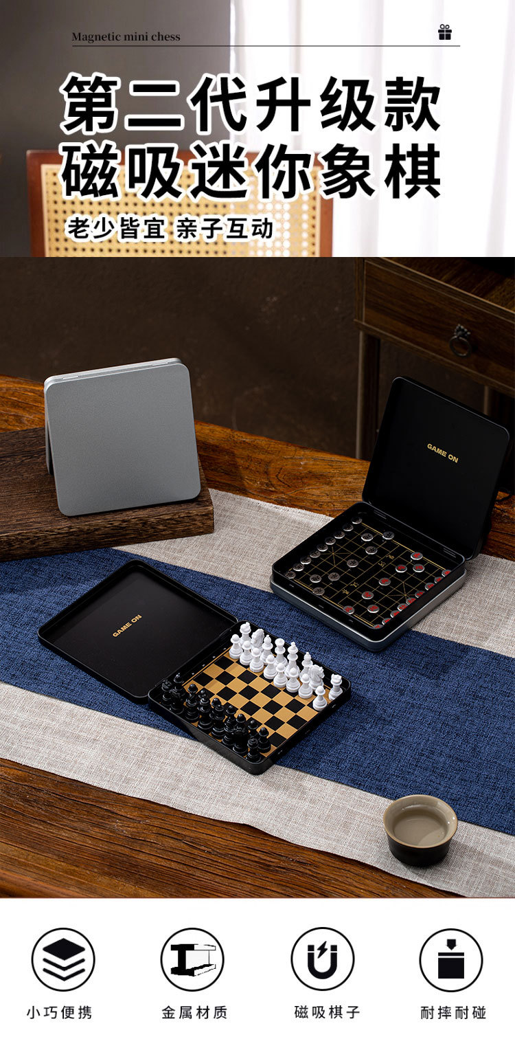 迷你中国象棋折叠棋磁吸成人学生儿童便携象棋智力游戏棋铁盒折叠