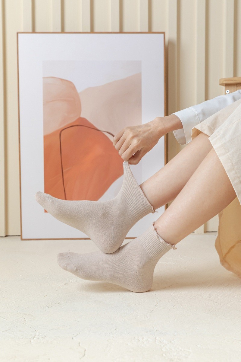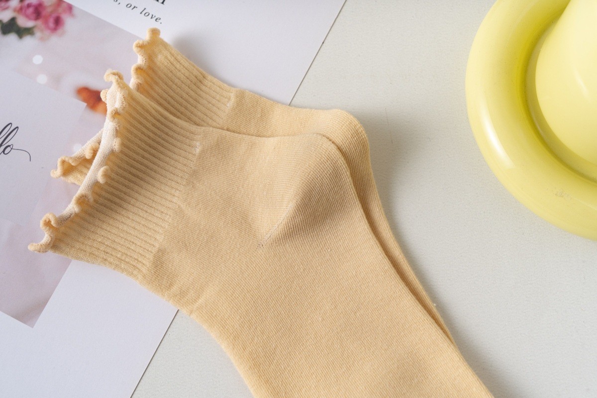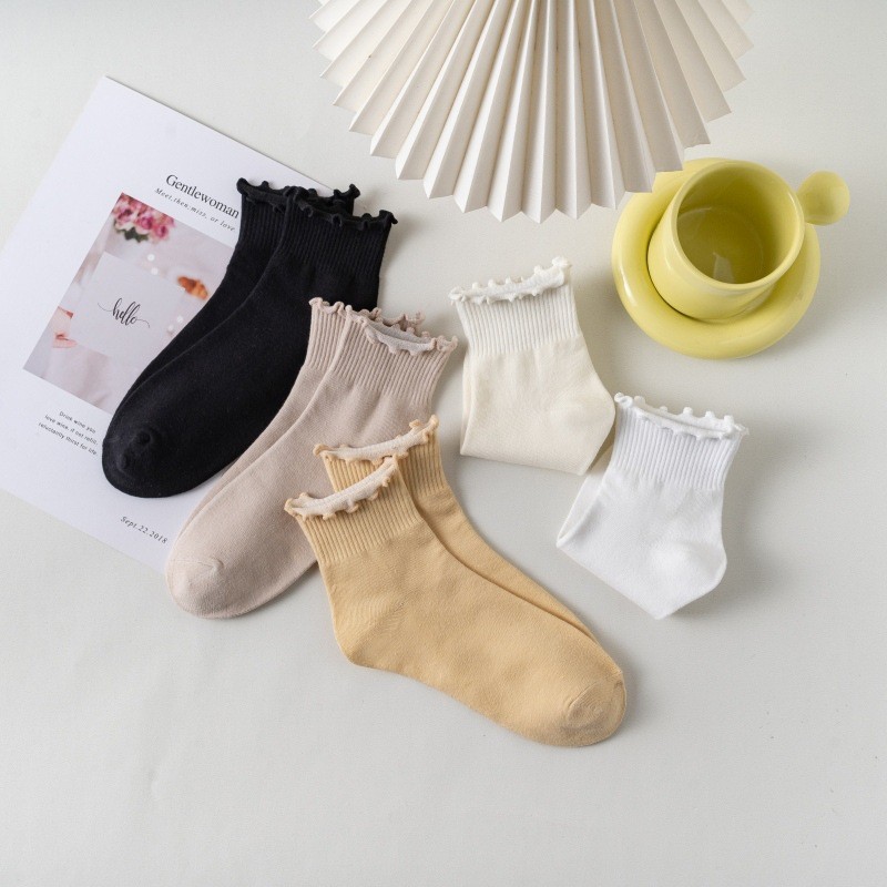 木耳边袜子女纯棉中筒袜春秋季透气吸汗花边女袜休闲运动JK袜包邮