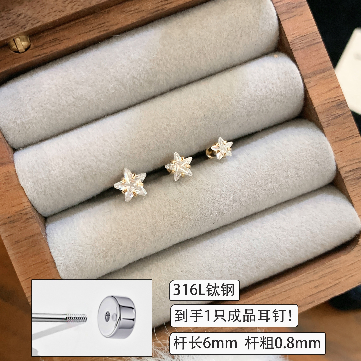 316L医用钛钢耳钉百搭爆闪五角星耳蜗钉精致小巧耳骨钉养耳洞耳饰