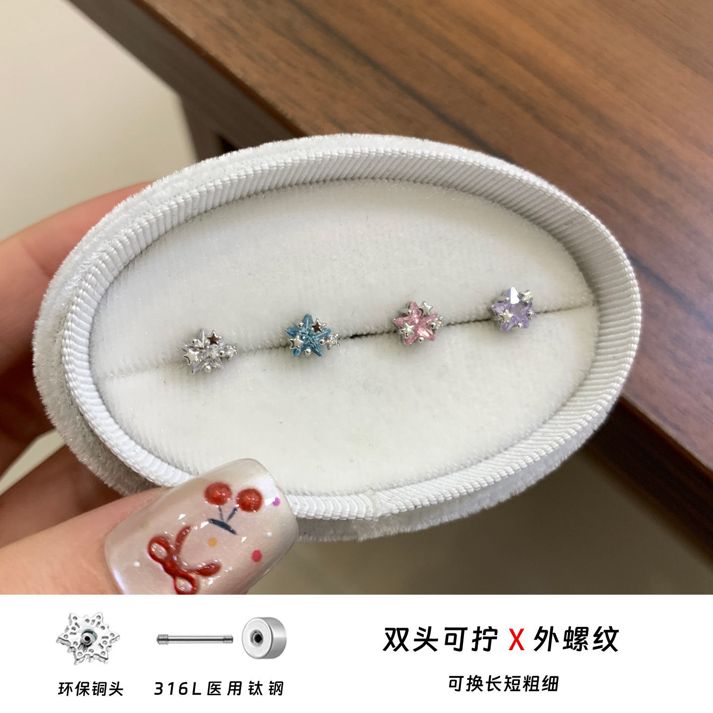 316L医用钛钢耳蜗钉四色五角星耳骨钉简约百搭耳钉养耳洞耳饰
