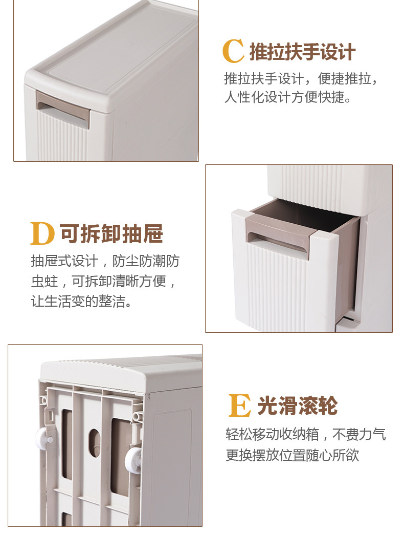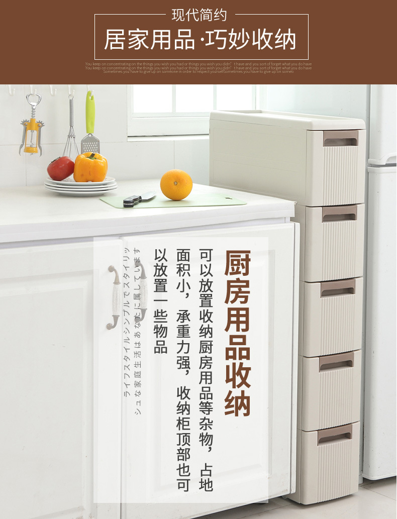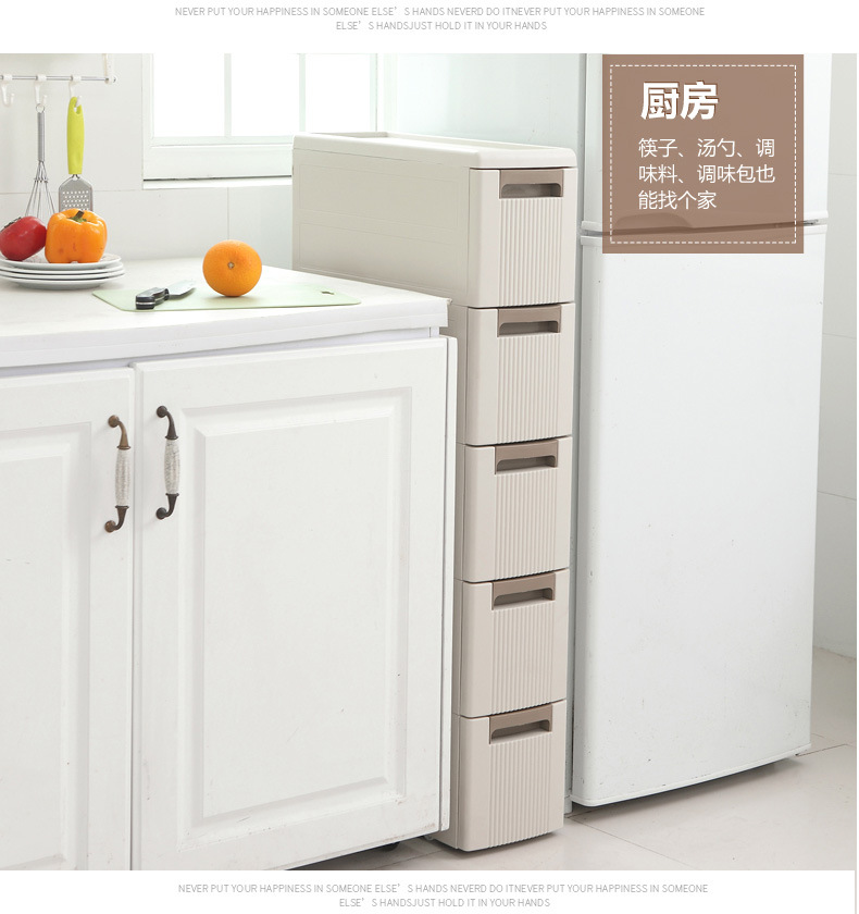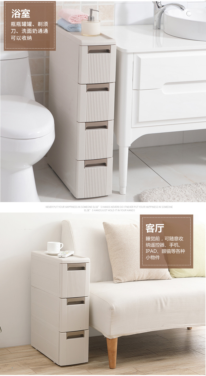 现代简约卫生间置物柜厨房客厅卧室塑料滑轮夹缝抽屉式多层收纳柜