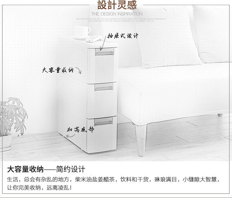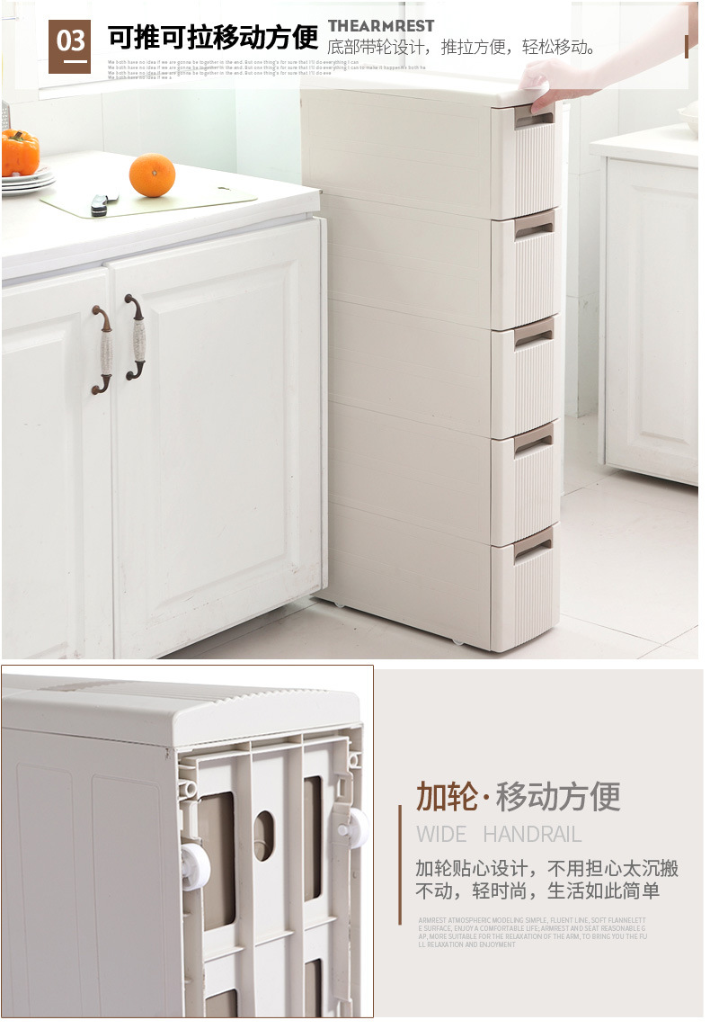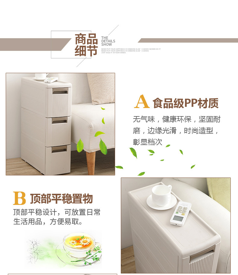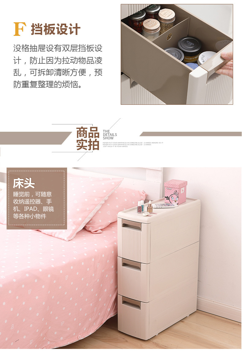现代简约卫生间置物柜厨房客厅卧室塑料滑轮夹缝抽屉式多层收纳柜