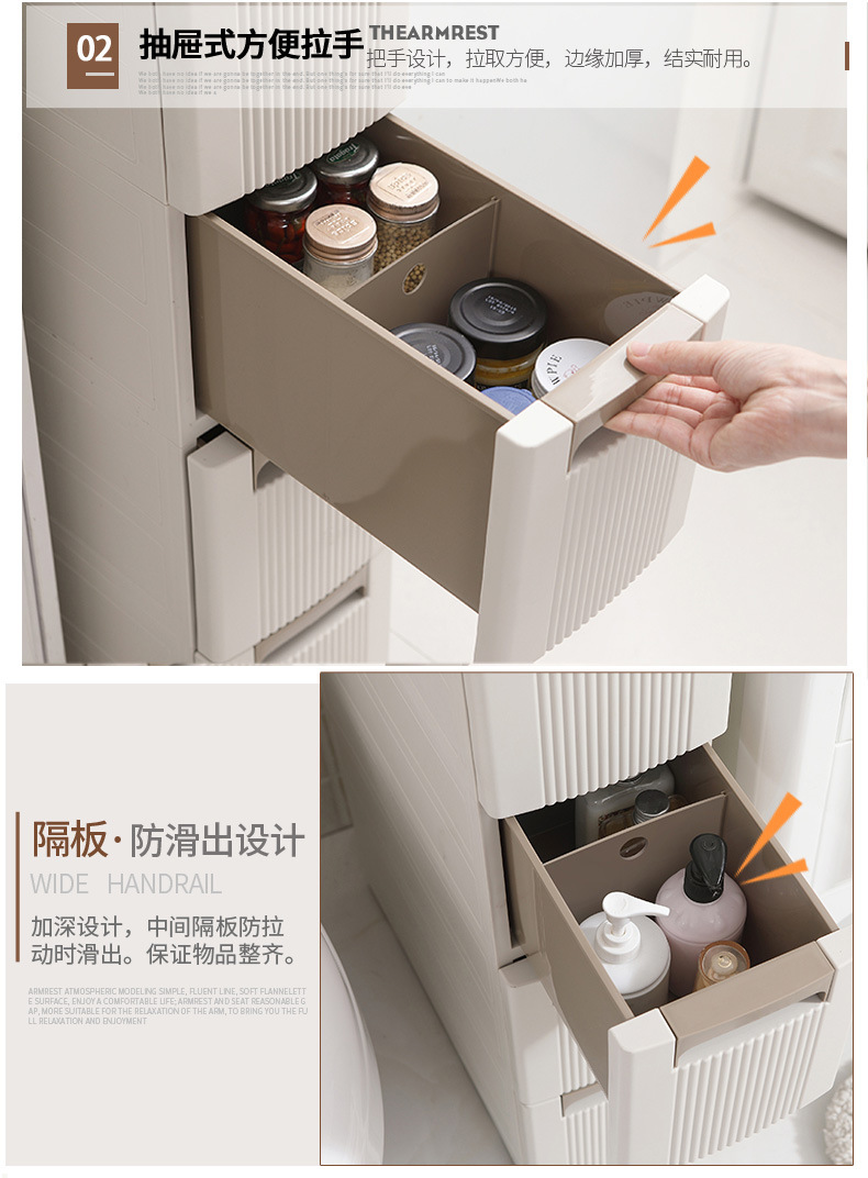 モダンシンプルなトイレ収納キャビネットキッチンリビングルーム寝室プラスチックプーリー挟み引き出し式多層収納キャビネット