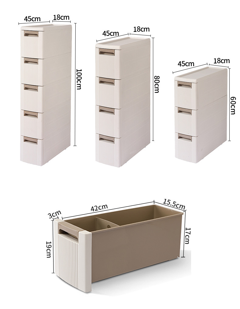 15/18/25cm卫生间夹缝收纳柜抽屉式塑料多层家用窄缝储物柜置物柜