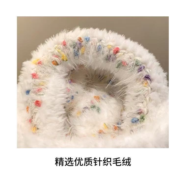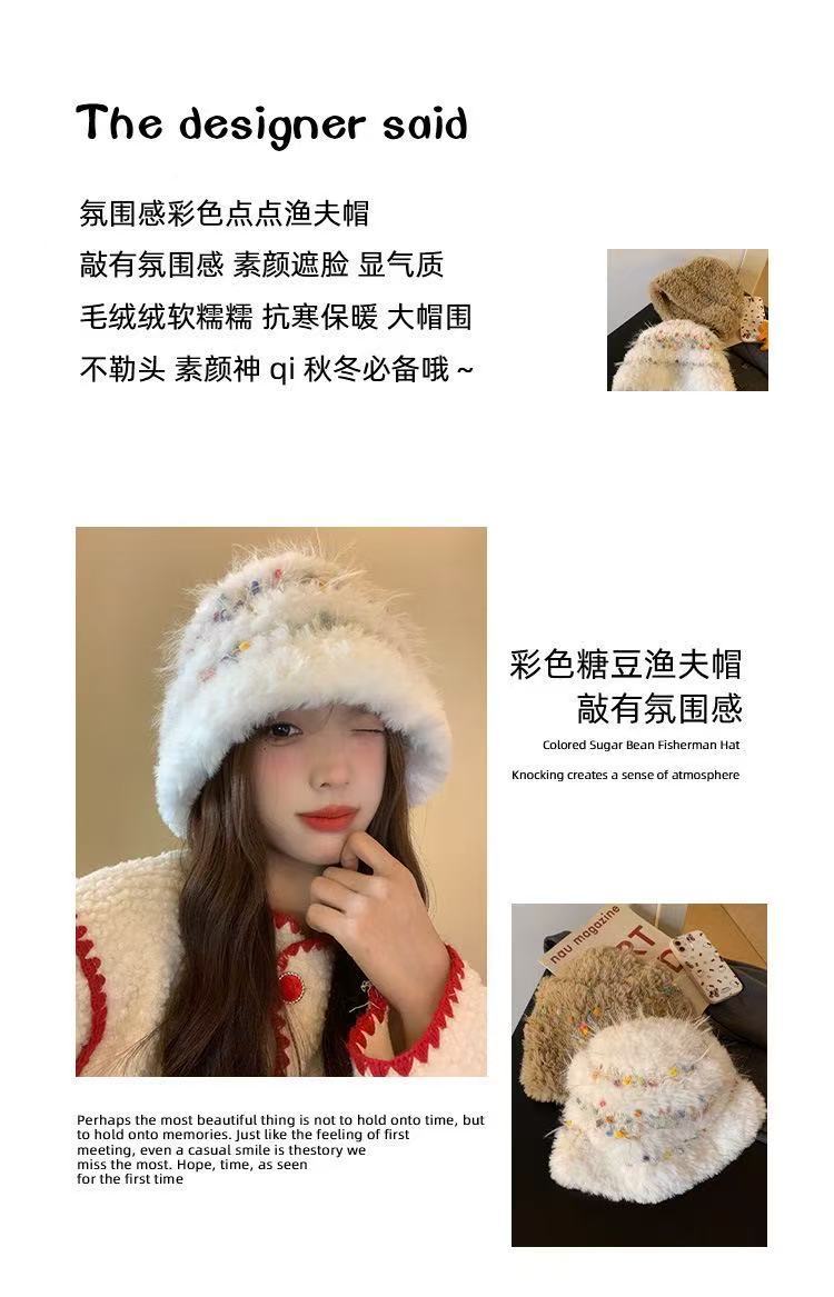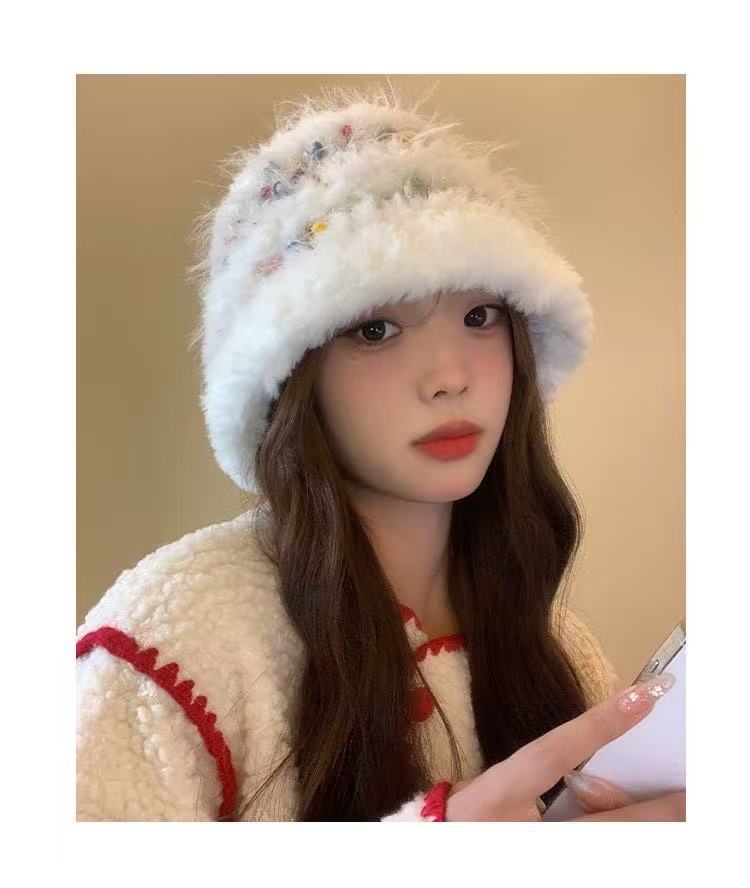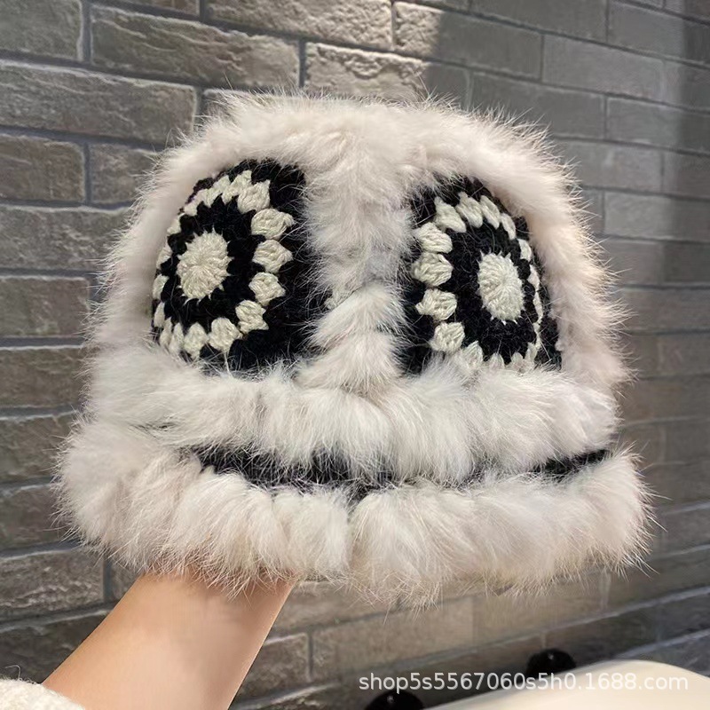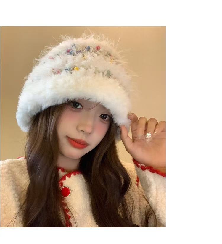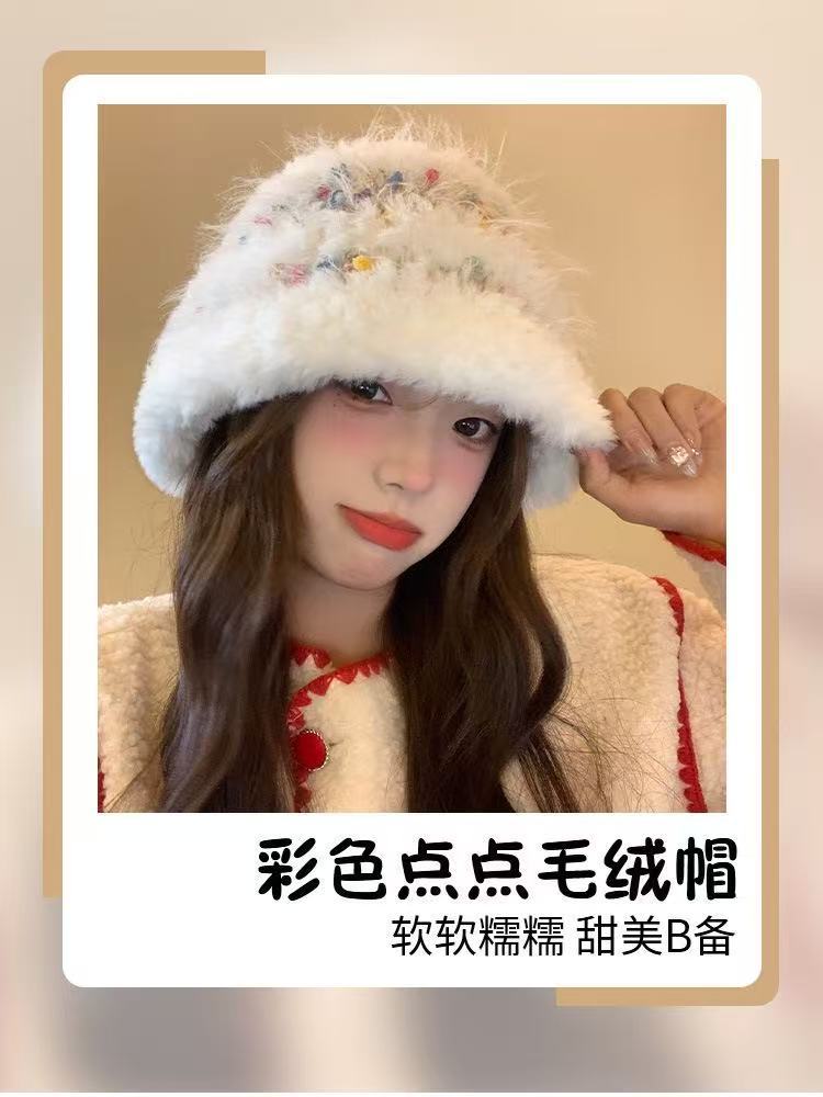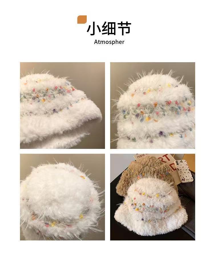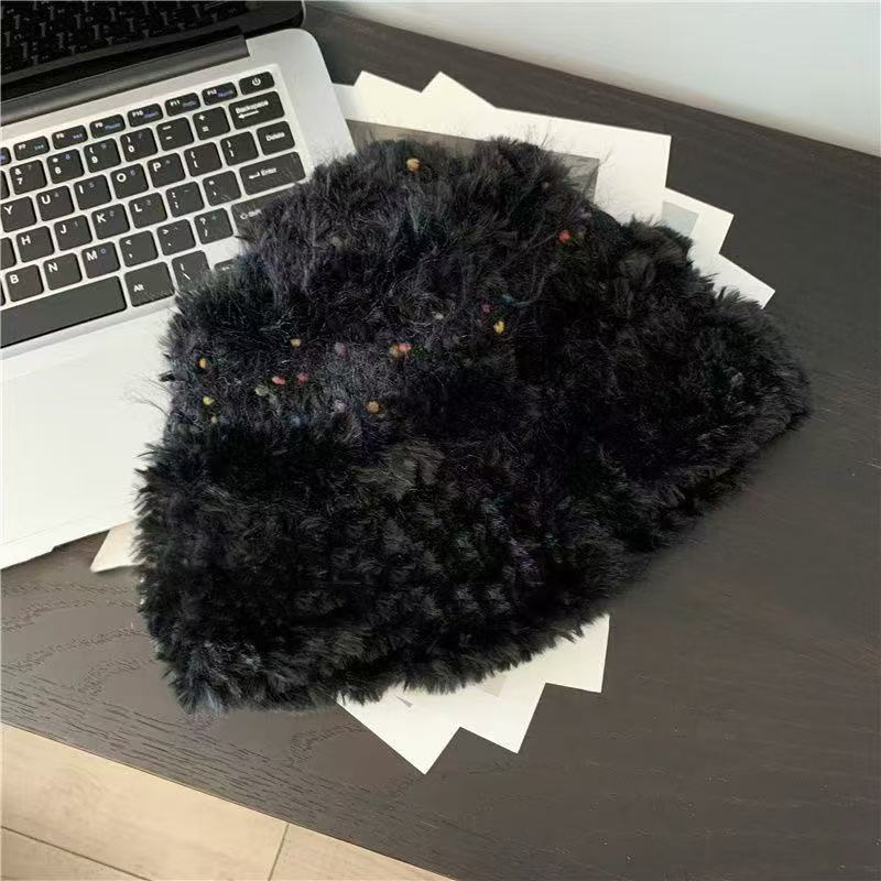 2025新款冬毛茸茸保暖显脸小针织帽筒子渔夫帽手工钩织毛线帽子女