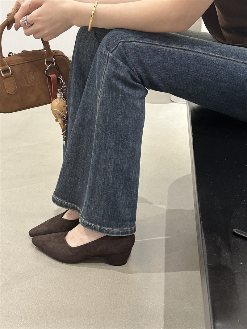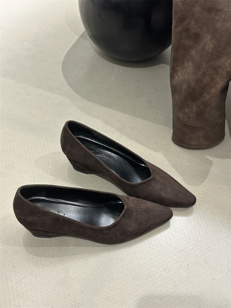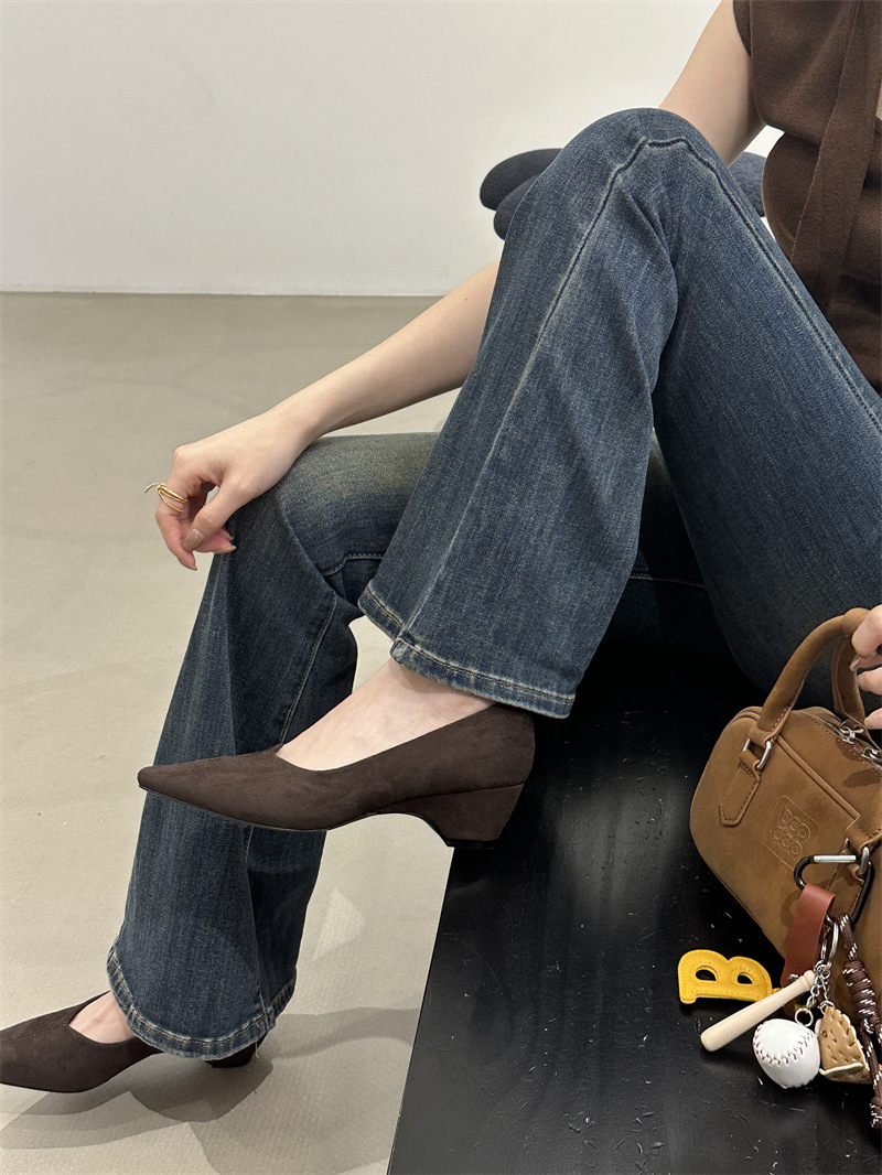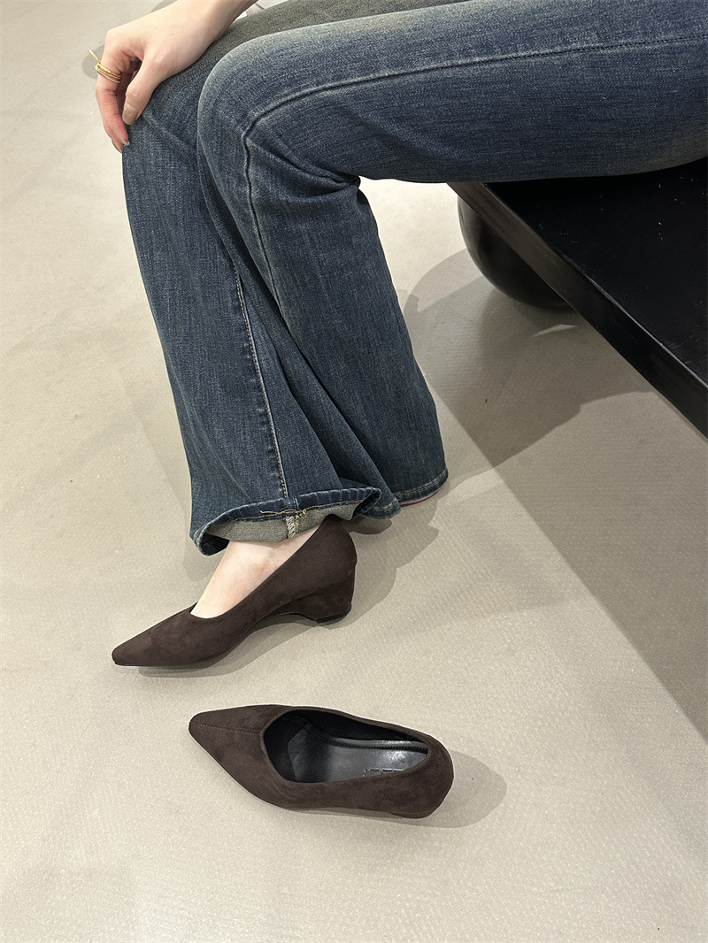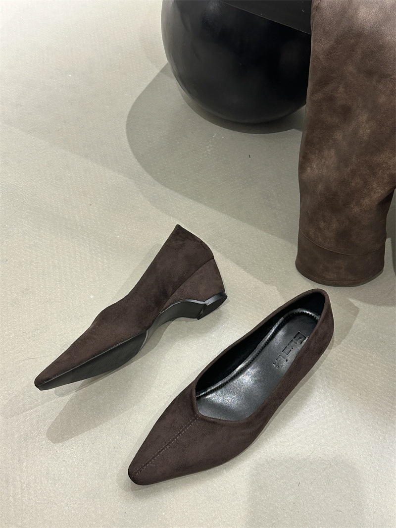 フランス式の高級な小さい大衆の茶色の靴の女性の靴の2025春秋の坂と気質の先の尖った通勤の晩の乳の靴