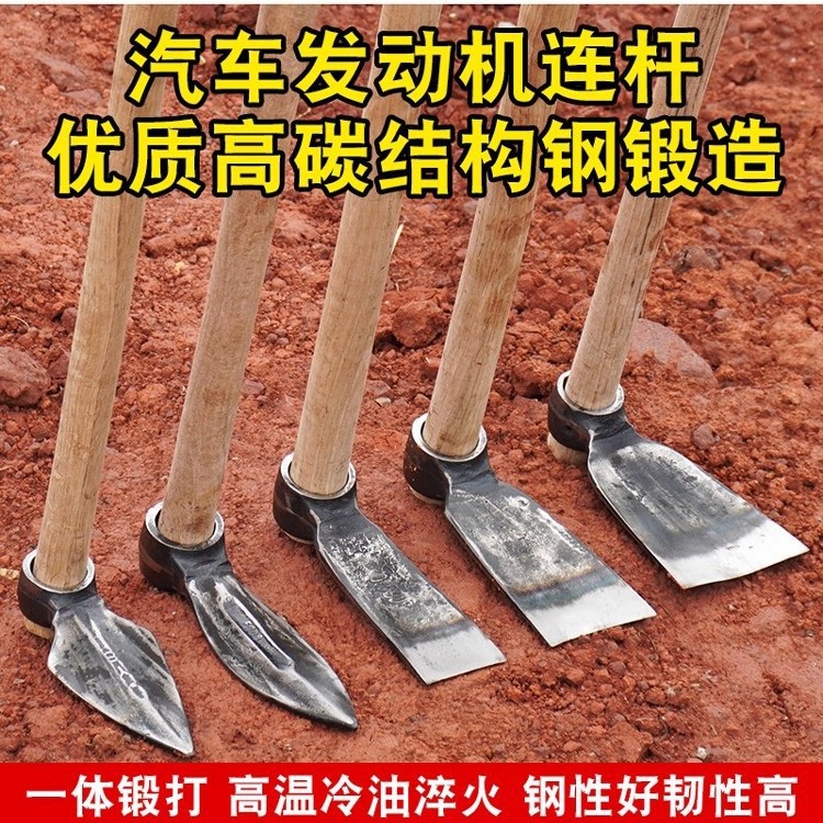 加厚连杆小锄头手工锻打种菜种花园艺工具淬火锻打多功能农用工具