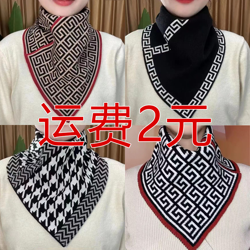 千鸟格围脖护颈套头保暖三角巾围巾秋冬防风防寒印花高级感三角巾