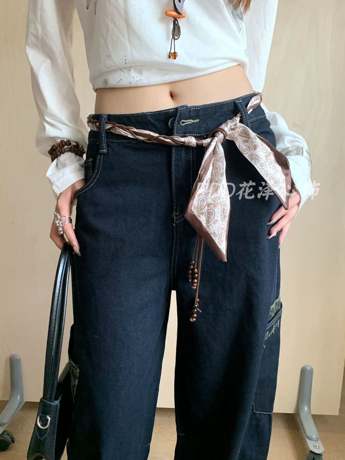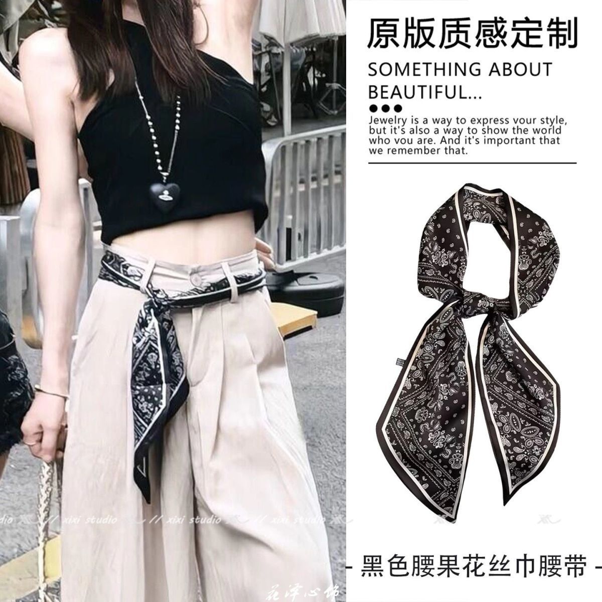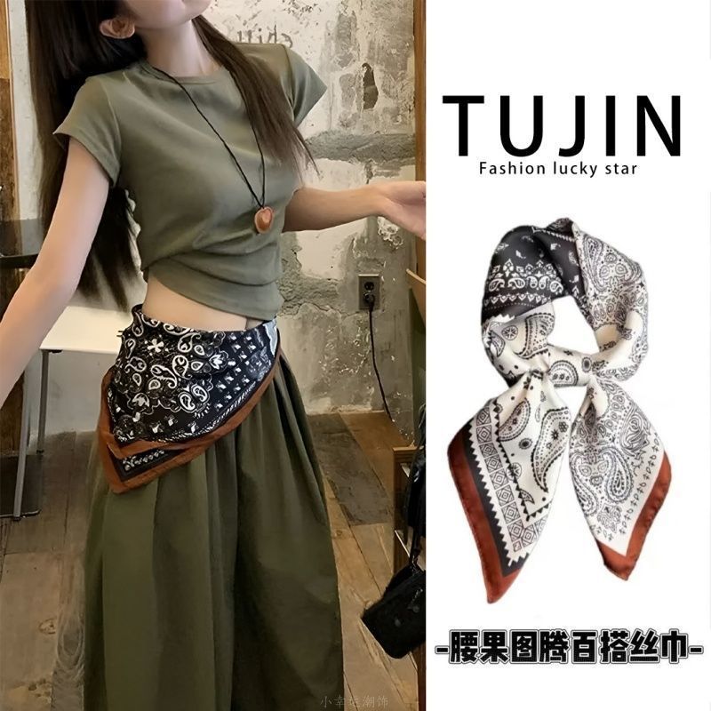 韩国腰果花丝巾三角巾女叠穿配饰牛仔裤腰带腰间屁帘旅游搭配衬衫