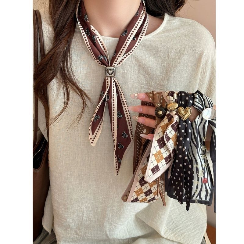 自然系!咖色腰果花丝巾女高级感搭配衬衫围脖美拉德复古系脖配饰