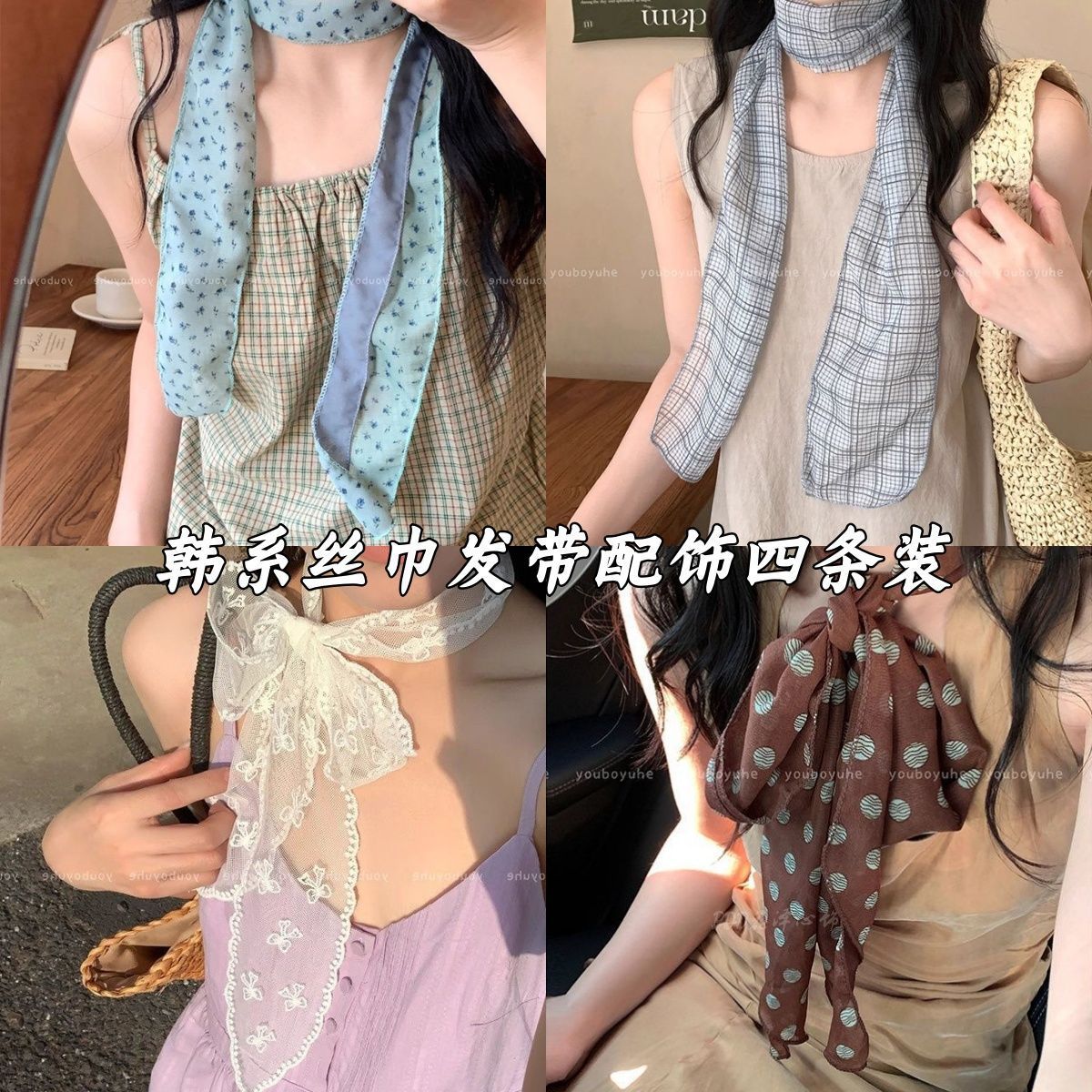 韩系波点小丝巾发带女2025新款海边领巾装饰配饰长条围巾飘带发饰