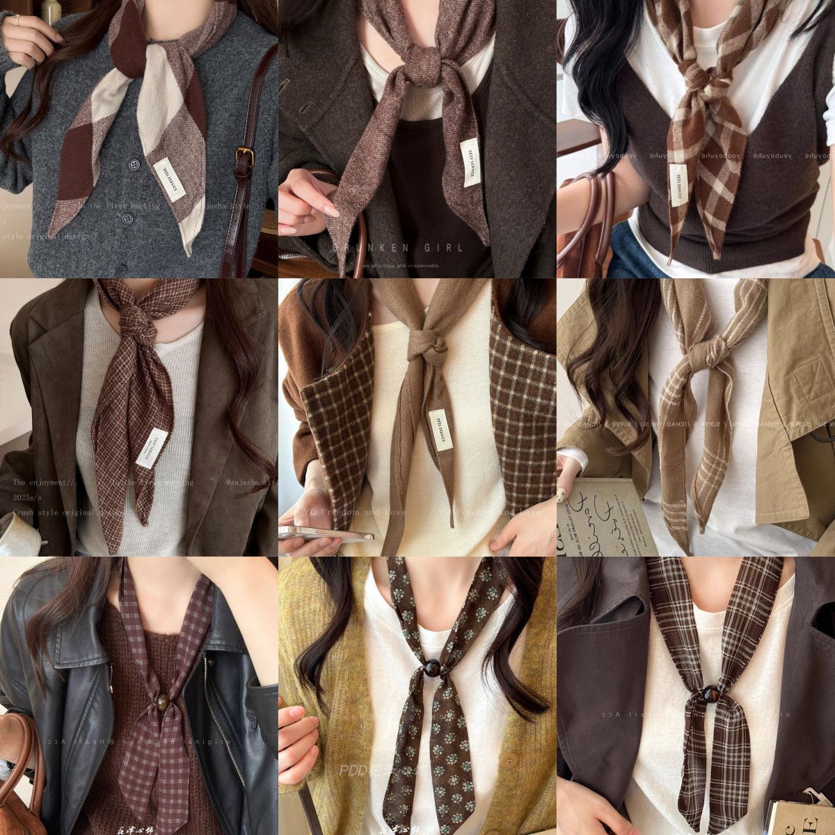 保暖小心机!美拉德复古格子软糯丝巾女秋冬高级感围巾三角巾项链