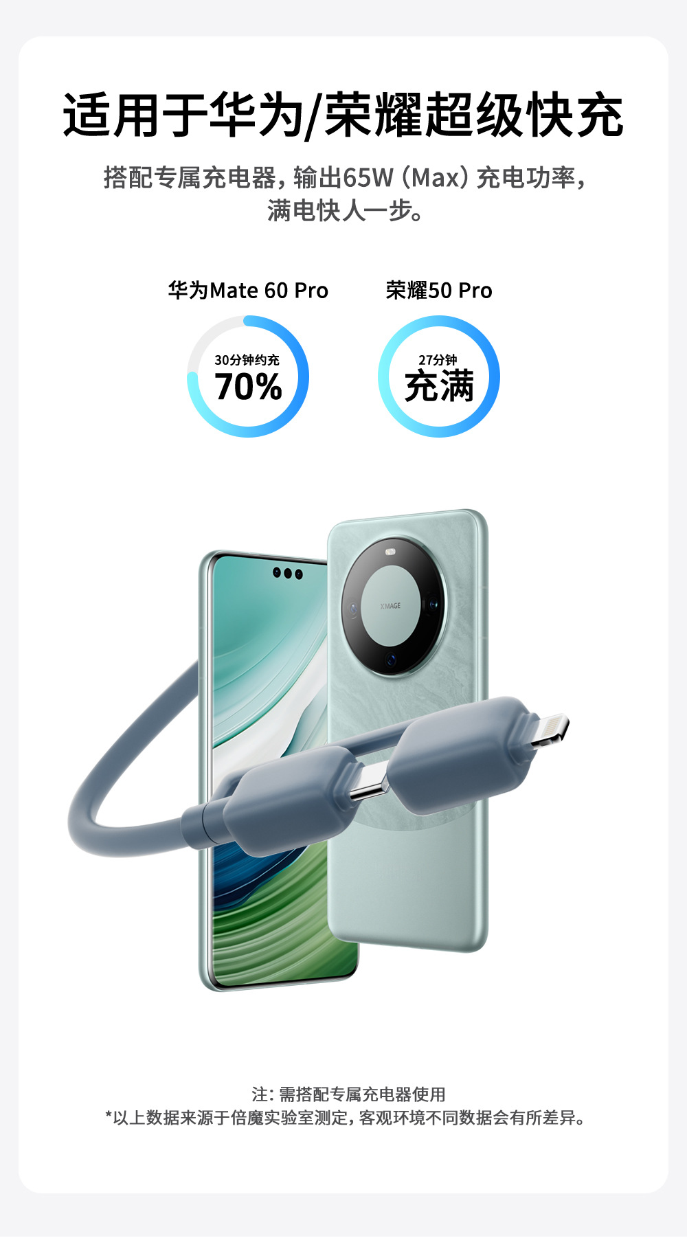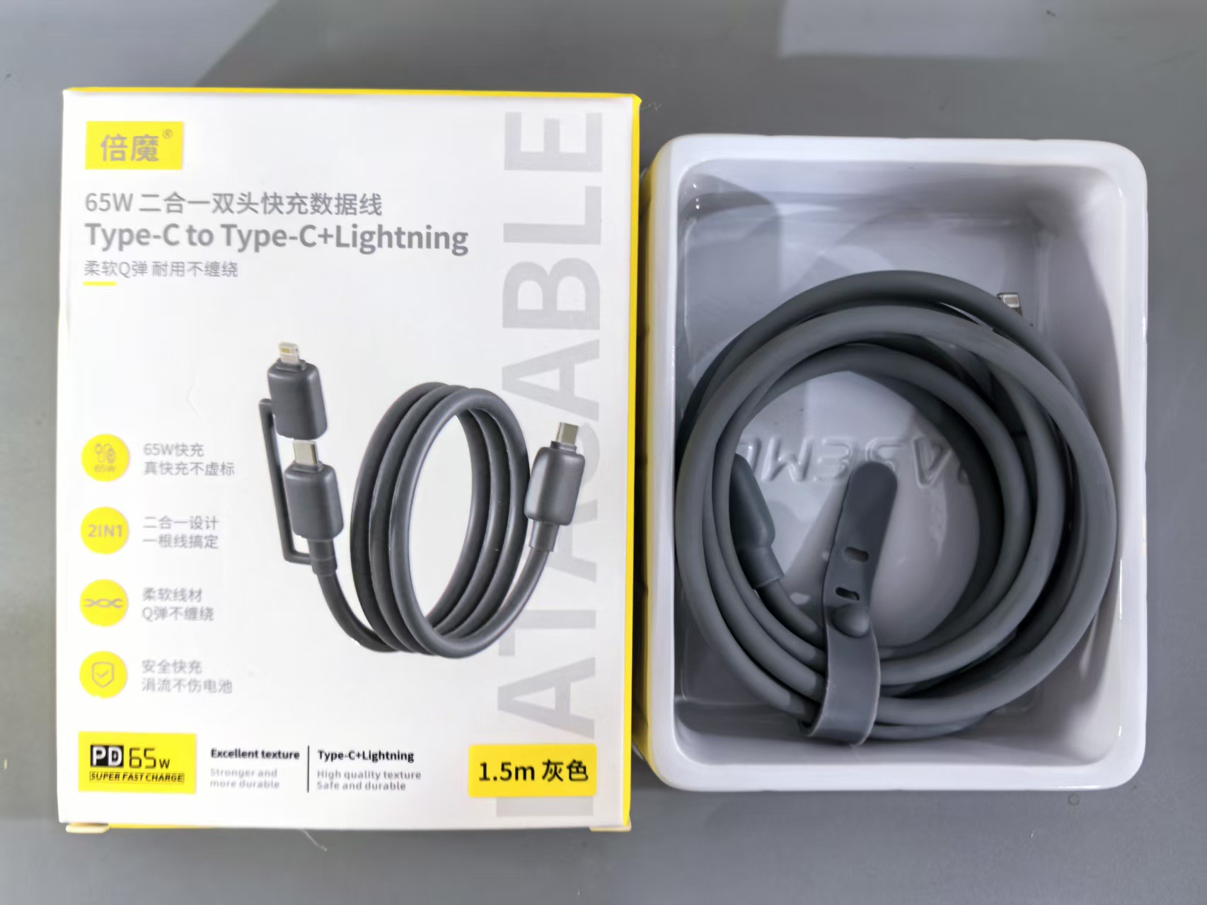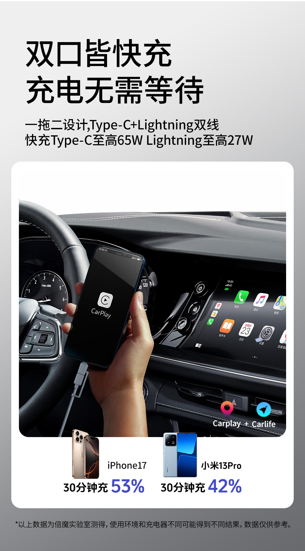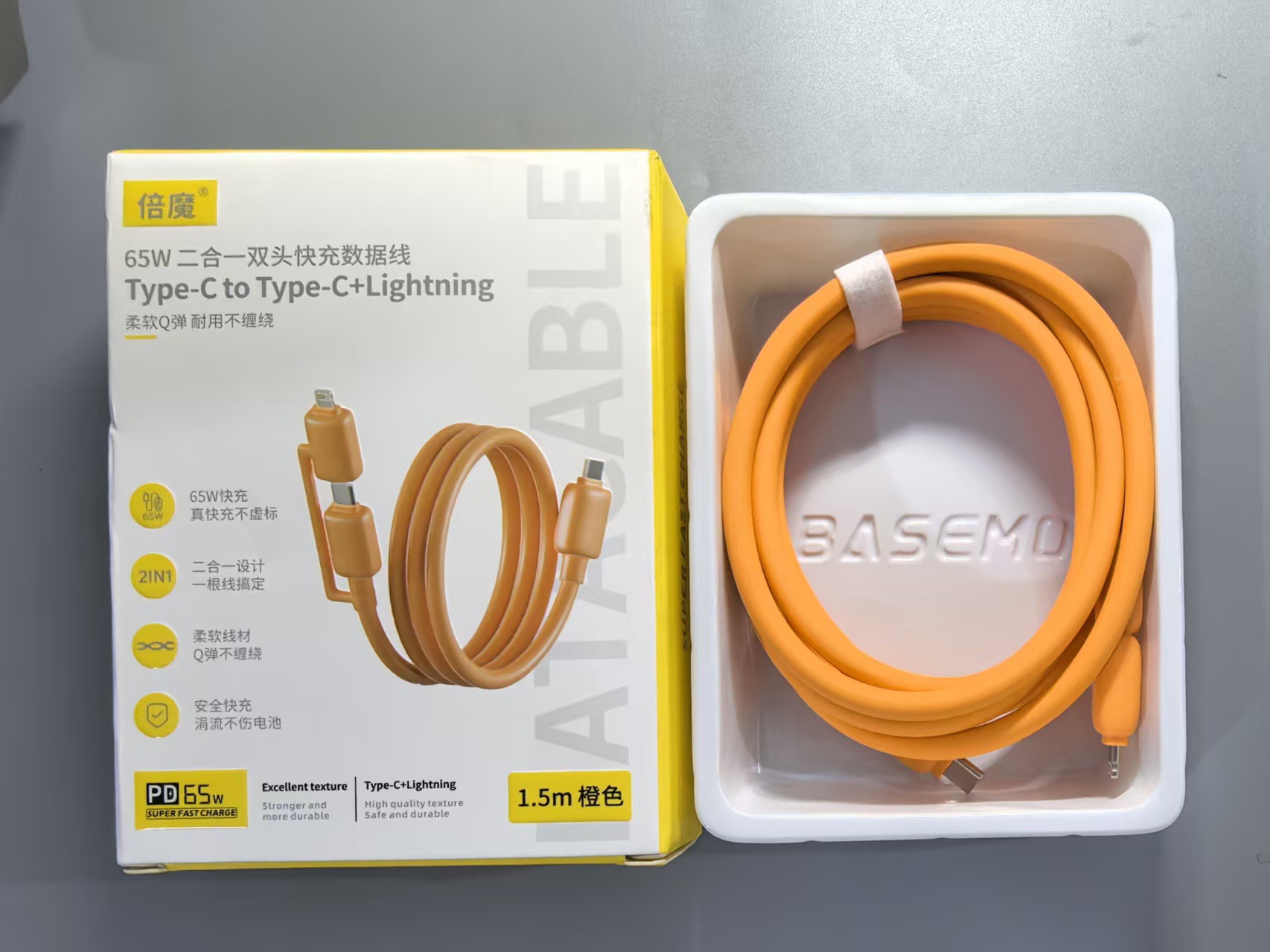 【实力工厂】倍魔65W二合一双头快充数据线适用苹果8-17华为安卓.