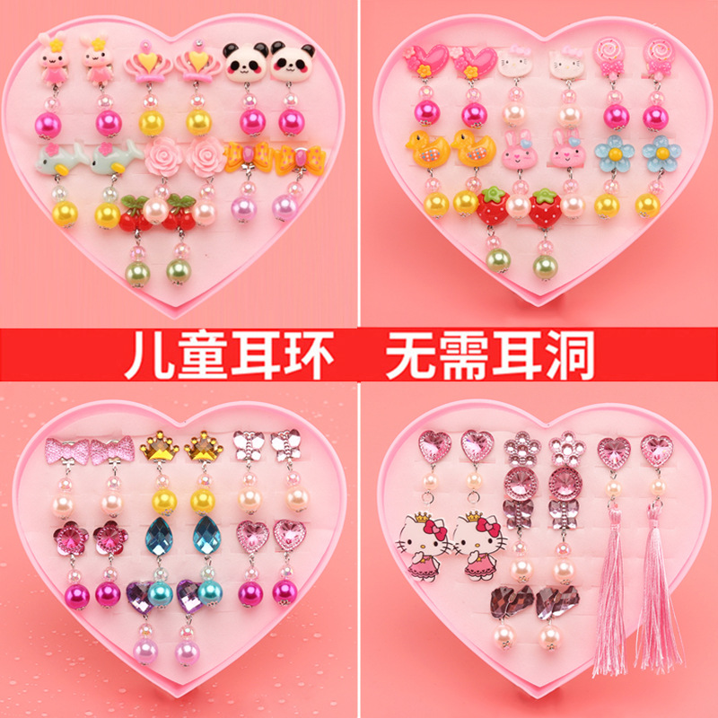 儿童耳环耳夹无耳洞宝宝公主可爱卡通女孩女童假耳坠首饰耳钉饰品