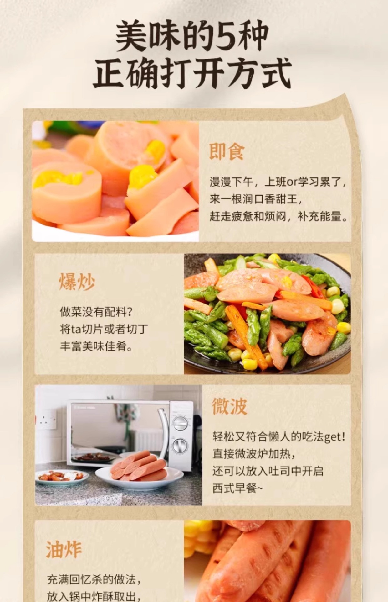 双匯コーンホットドッグソーセージ、スパイシーでクリスピーソーセージ、すぐに食べられるスナック、クリスピーグリルソーセージ、ハムソーセージ、旅行時の食欲を満たすT