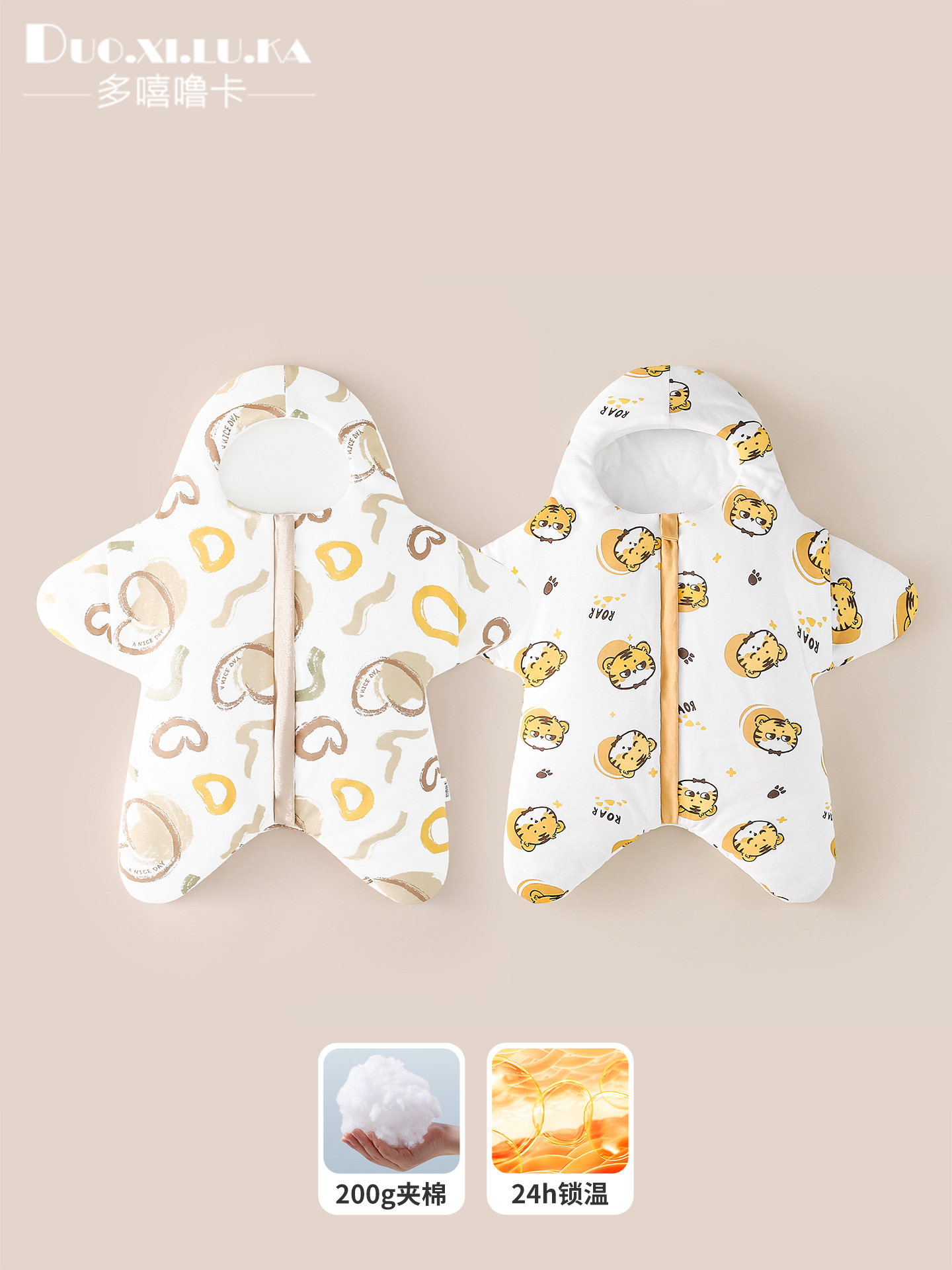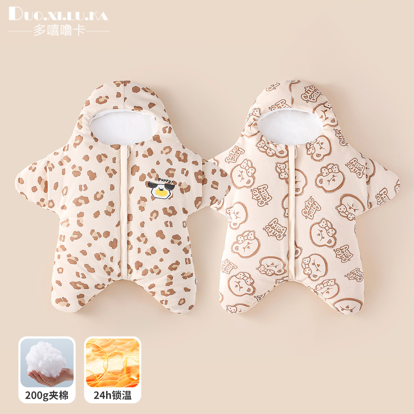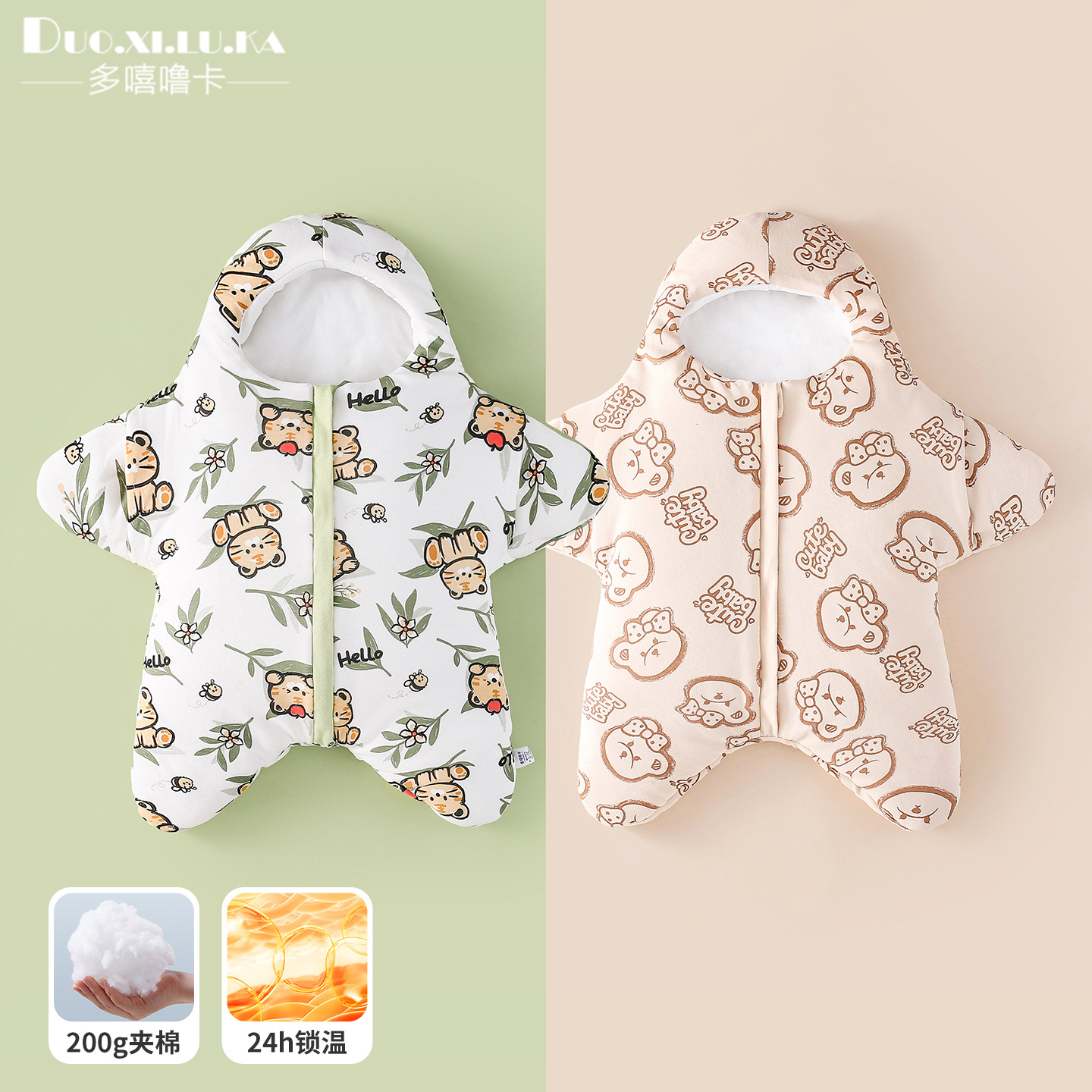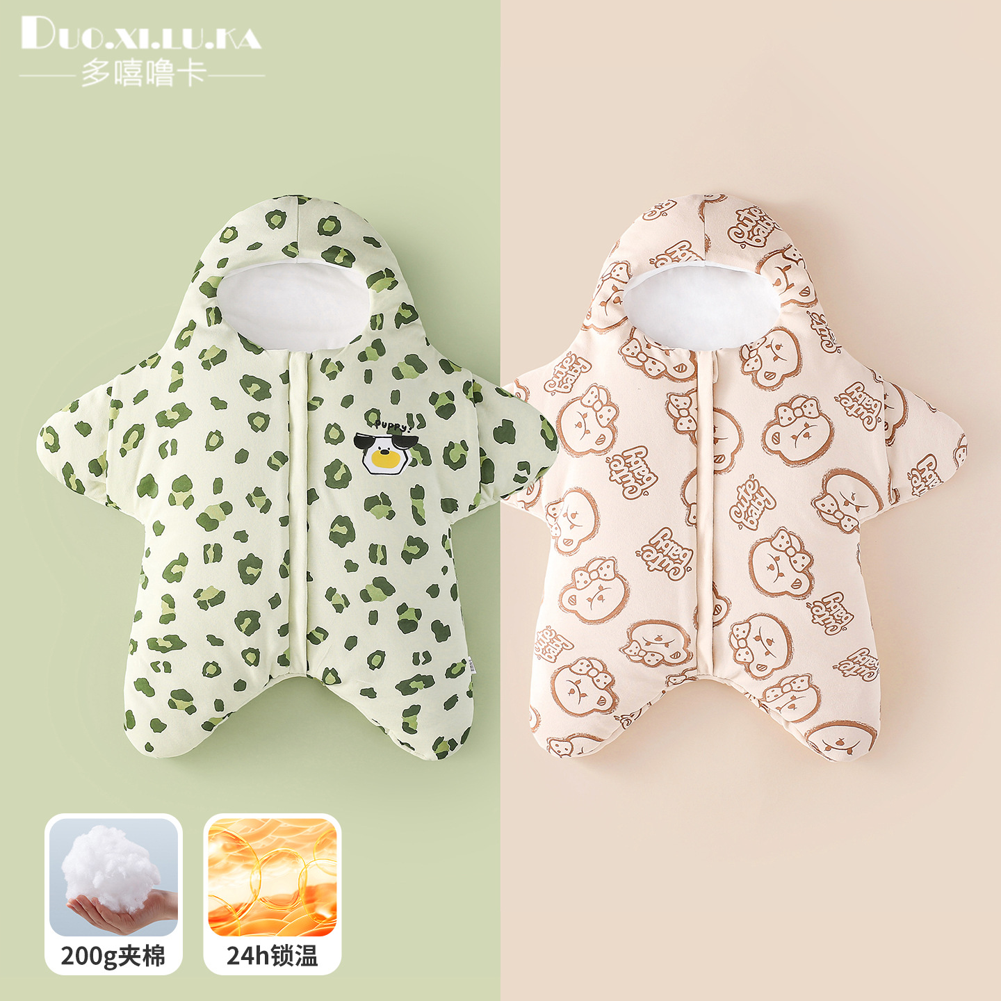 睡袋婴儿秋冬季连体衣新生儿包被海星加厚加绒宝宝派大星外出抱服