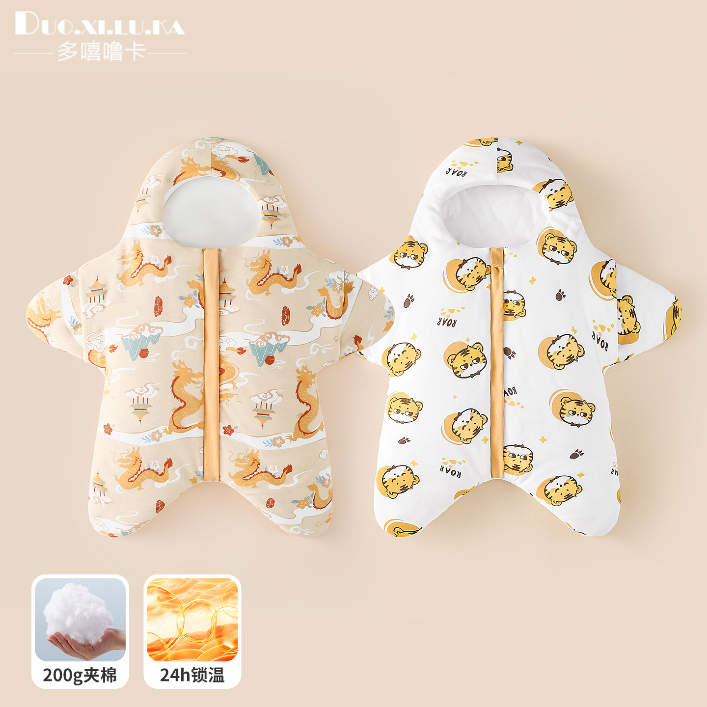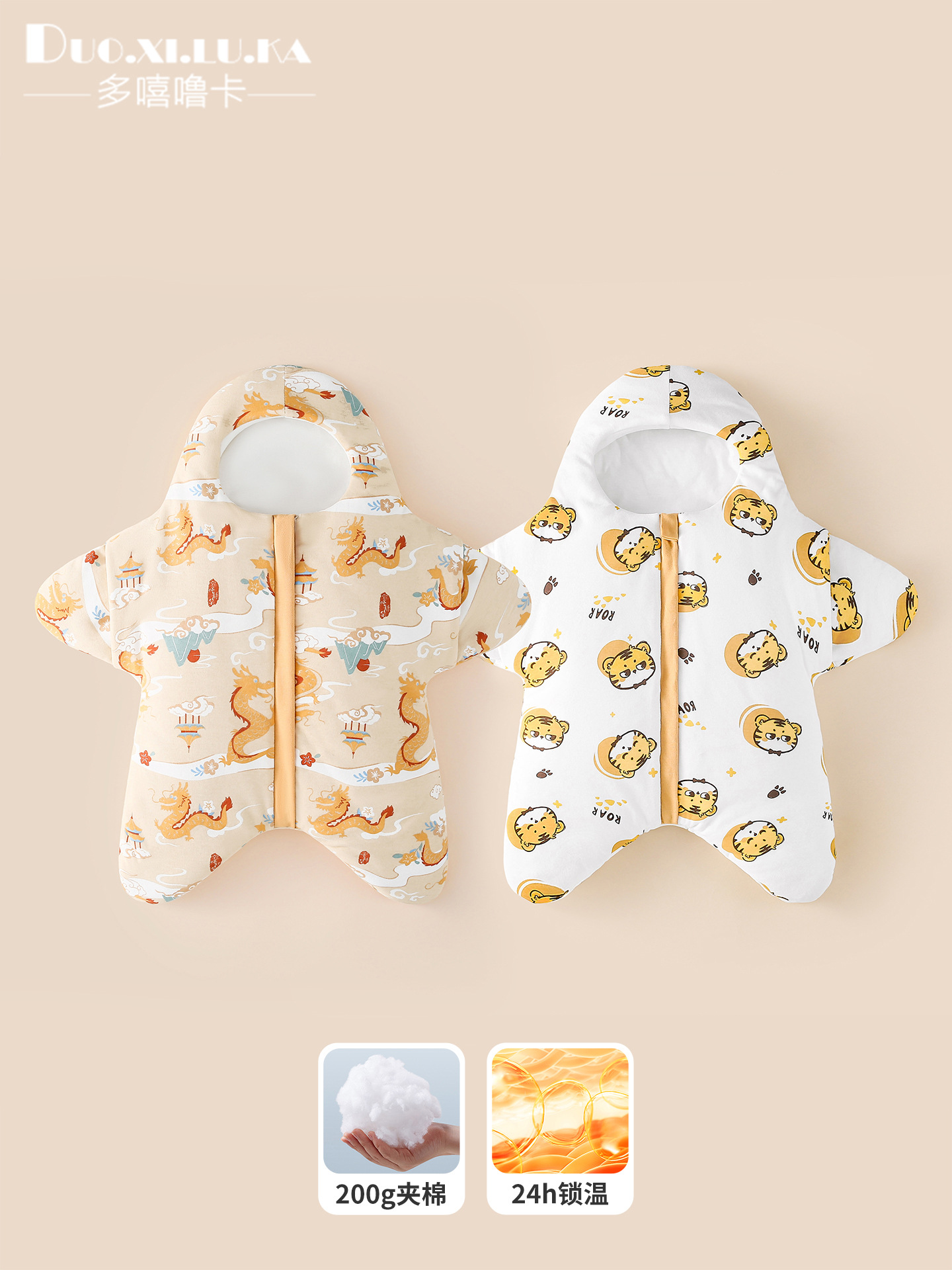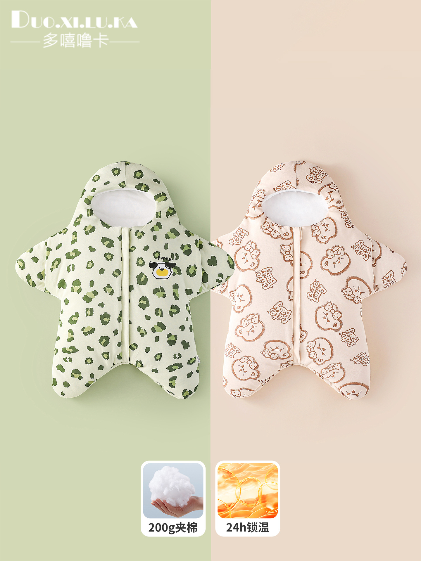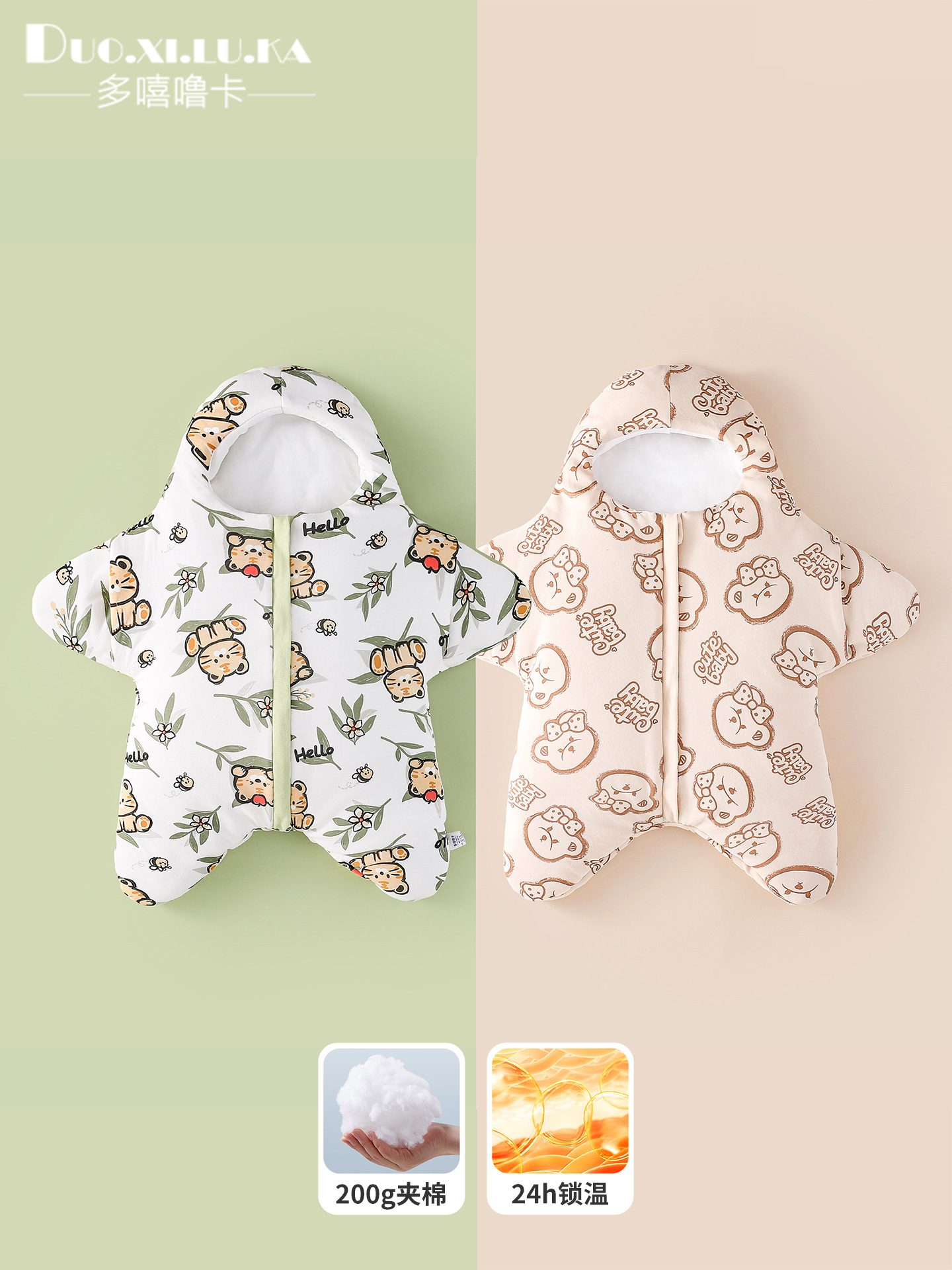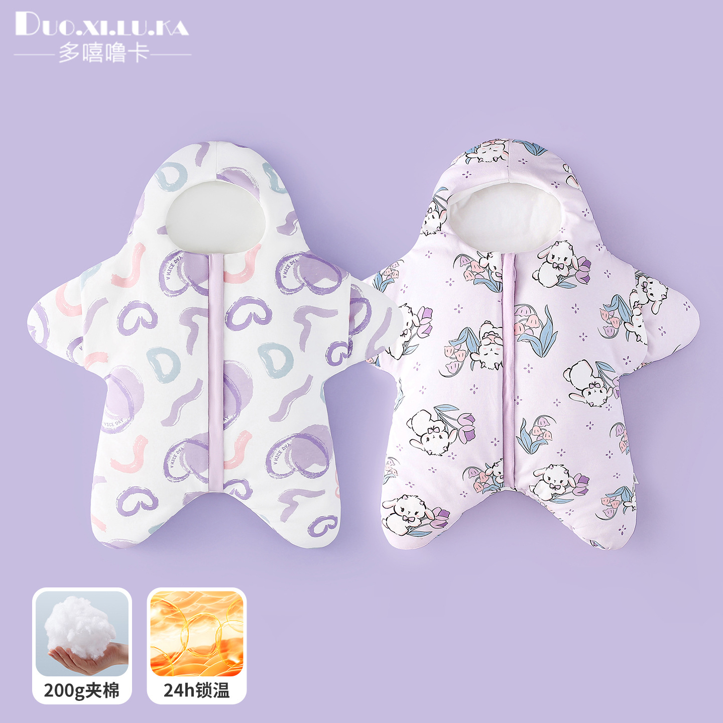 睡袋婴儿秋冬季连体衣新生儿包被海星加厚加绒宝宝派大星外出抱服