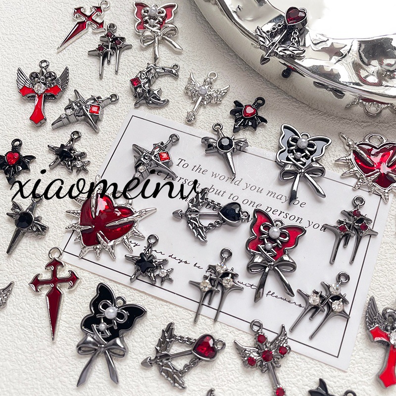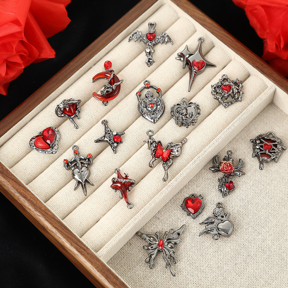 暗黑系哥特万圣节风黑红合金挂件蝴蝶翅膀星星diy手工配饰品串饰