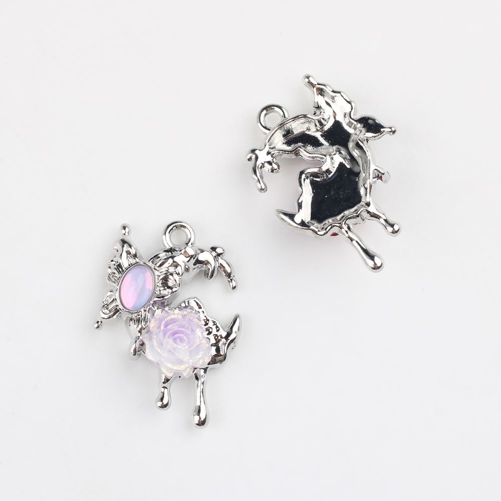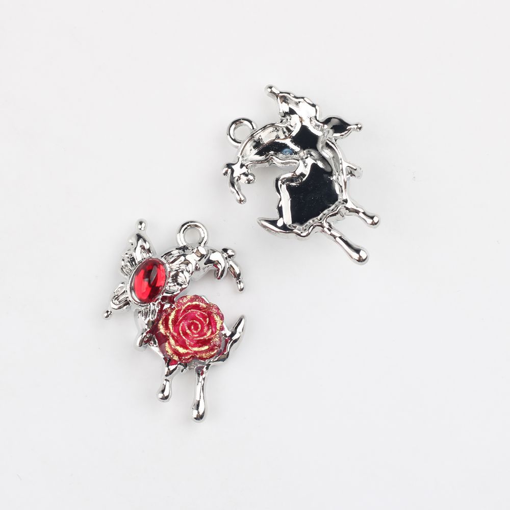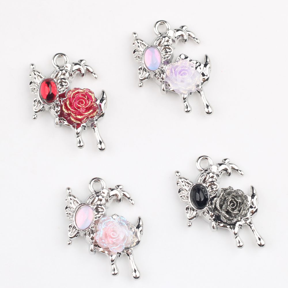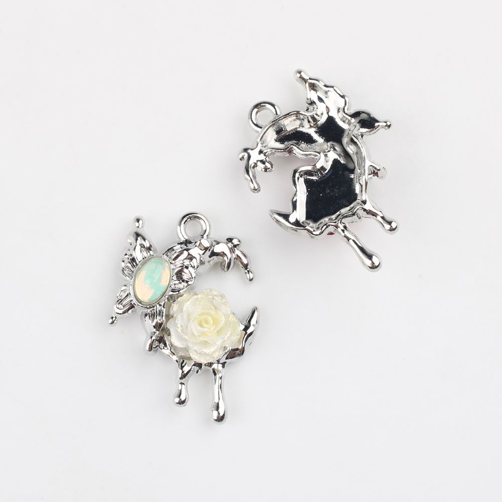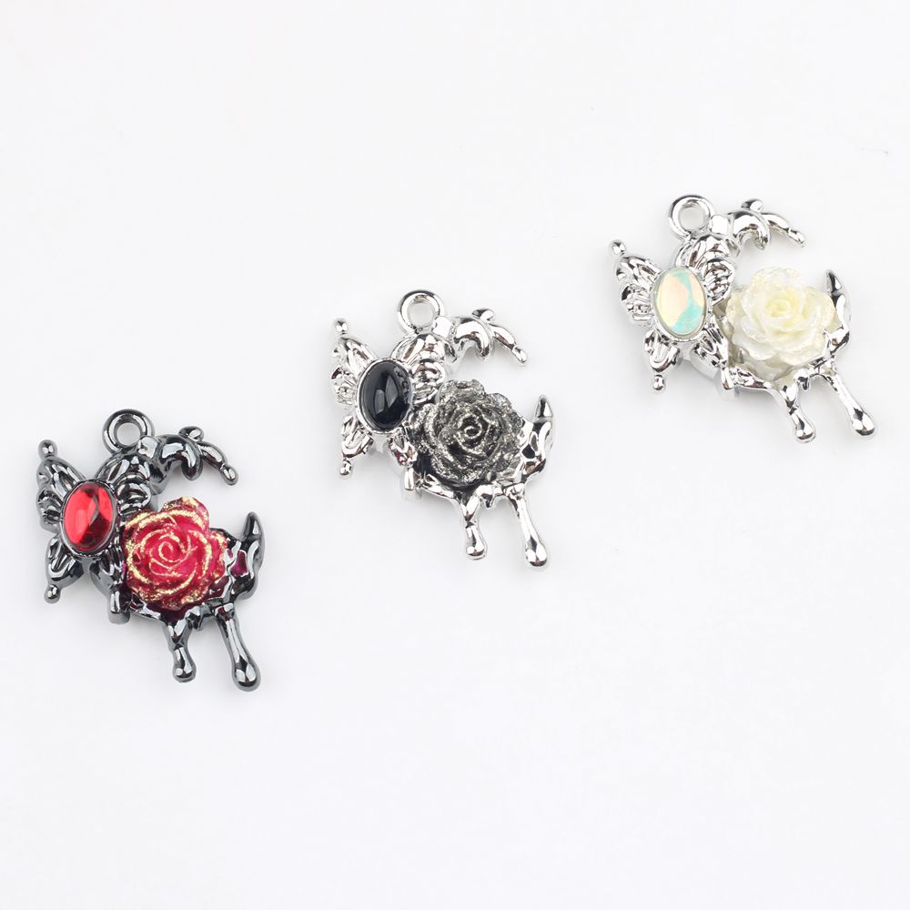 甜酷辣妹风个性合金镶钻玫瑰花蝴蝶月亮吊坠 DIY饰品挂件配件材料